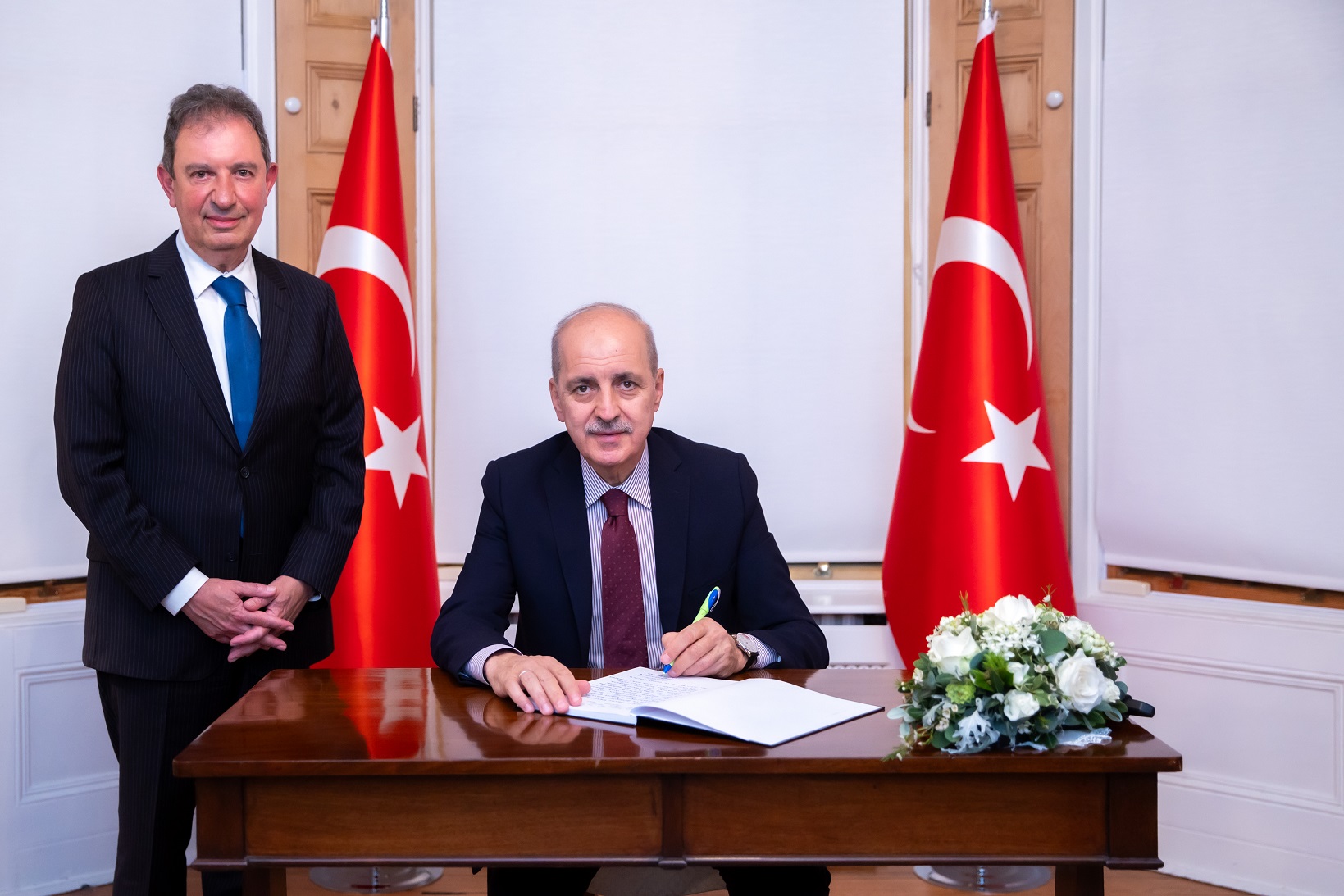 TBMM Başkanı Kurtulmuş, Türkiye’nin Dublin Büyükelçiliği’ni ziyaret ederek Büyükelçi Mehmet Hakan Olcay'dan çalışmalar hakkında bilgi aldı, büyükelçilik şeref defterini imzaladı.