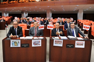 TBMM Genel Kurulu, Başkanvekili Sadık Yakut başkanlığında toplandı. MHP milletvekilleri, toplantı başlamadan önce sıralarına Türk bayrağı ile şehitlerin ve terör örgütü üyelerince öldürülen bir bebeğin fotoğraflarını astı.