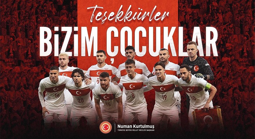 TBMM Başkanı Numan Kurtulmuş, 2024 Avrupa Futbol Şampiyonası (EURO 2024) çeyrek final maçında Hollanda'ya 2-1 mağlup olarak turnuvaya veda eden A Milli Futbol Takımı'na teşekkür etti.
