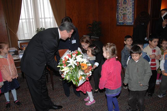 Meclis Başkanı Toptan, öğretmenleriyle birlikte makamına gelen çocuklarla sohbet etti ve 6 yaşındaki Yağmur Salantur'un arkadaşları adına sunduğu çiçeği kabul etti. Köksal Toptan daha sonra çocuklarla hatıra fotoğrafı çektirdi.