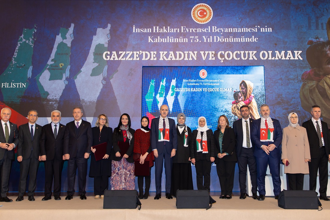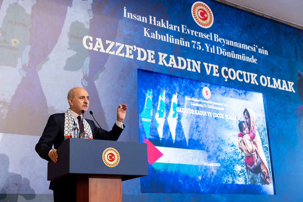 Meclis Başkanı Kurtulmuş, İnsan Hakları Evrensel Beyannamesi'nin kabulünün 75. yıl dönümü dolayısıyla TBMM Tören Salonu'nda düzenlenen, "Gazze'de Kadın ve Çocuk Olmak Paneli"nde yaptığı konuşmada, Filistin halkına verdikleri desteği bütün dünyaya göstermek için TBMM'de bugün düzenlenen etkinlikle bir araya geldiklerini söyledi.