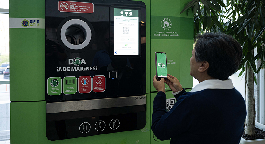 Cumhurbaşkanı Recep Tayyip Erdoğan'ın eşi Emine Erdoğan'ın himayesinde Çevre, Şehircilik ve İklim Değişikliği Bakanlığınca yürütülen Depozito Yönetim Sistemi Projesi kapsamında DOA logosu taşıyan plastik, cam ve alüminyum gibi malzemeler, iade makineleri aracılığıyla geri kazandırılıyor.