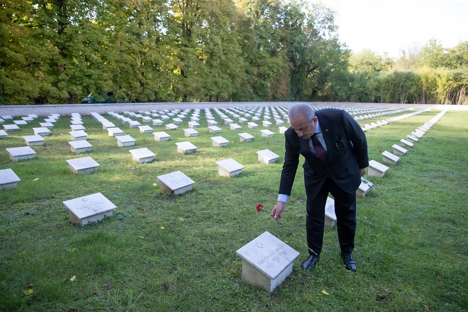 TBMM Başkanı Mustafa Şentop, saygı duruşu ve Türkiye ile Macaristan milli marşlarının okunmasından sonra Şentop, askerlerin mezarlarına karanfil ve gül bırakıp dua etti, şehitlik defterini imzaladı.