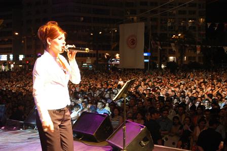 TBMM'nin açılışının 85. yıldönümü ve Milli Egemenlik Yılı kapsamında düzenlenen ''Milli Egemenlik Halk Konseri''nin 7'ncisi İzmir'de yapıldı. Cumhuriyet Meydanı'ndaki konserde ses sanatçıları Muazzez Ersoy, Alişan ve Funda Arar sahne aldı. Yaklaşık 3 buçuk saat süren konser sırasında havai fişek gösterileri de yapıldı.
