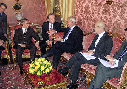 Bülent Arınç ve Marcello Pera, 21 Şubat Pazartesi günü saat 10.45'de TBMM Başkanlığı makamında baş başa bir görüşme yapacaklar. Bu görüşmenin ardından,saat 11.00'de TBMM Tören Salonu'nda heyetler arası görüşmelere geçilecek.