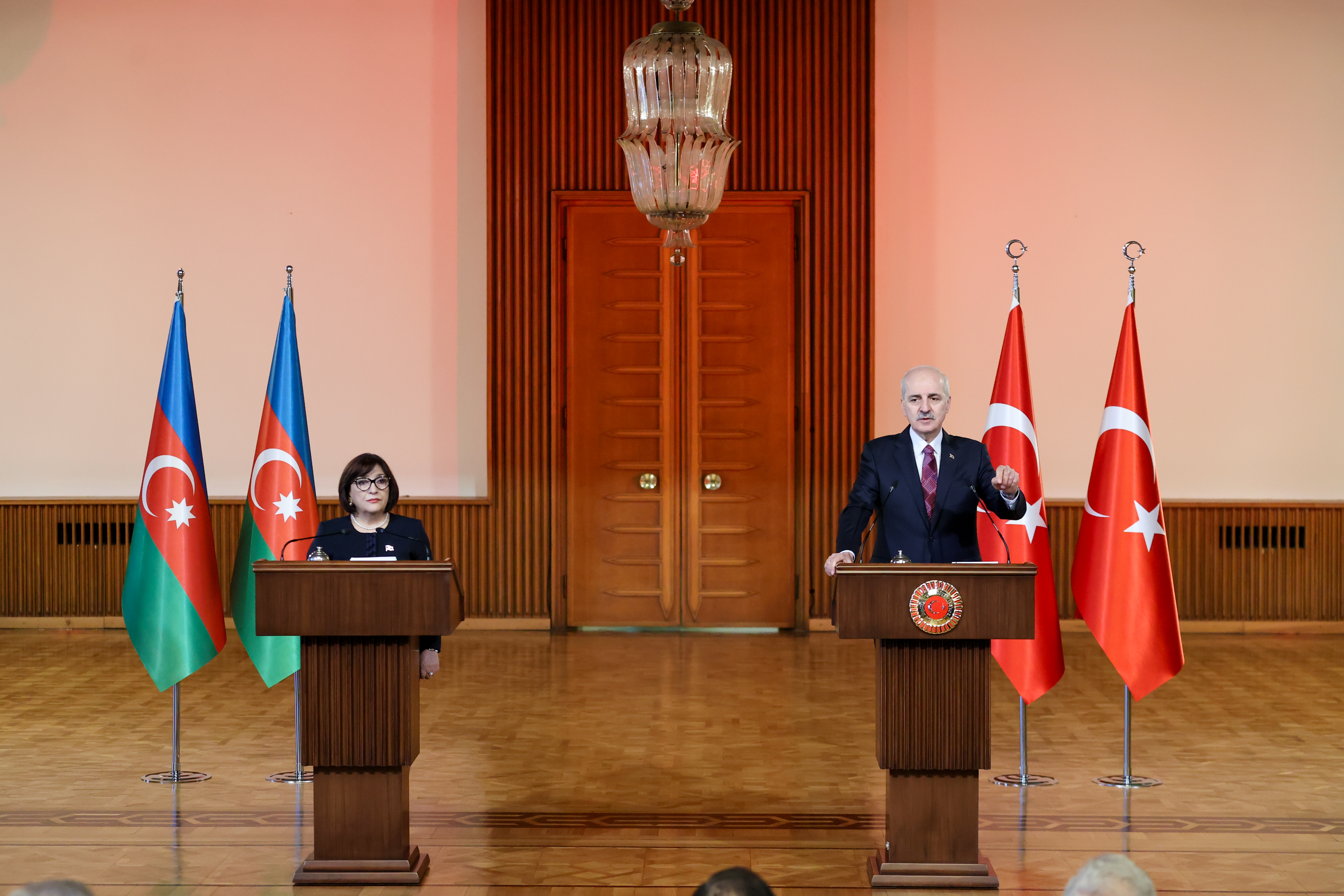Kurtulmuş ve Gafarova, baş başa ve heyetler arası görüşmenin ardından ortak basın toplantısı düzenledi.