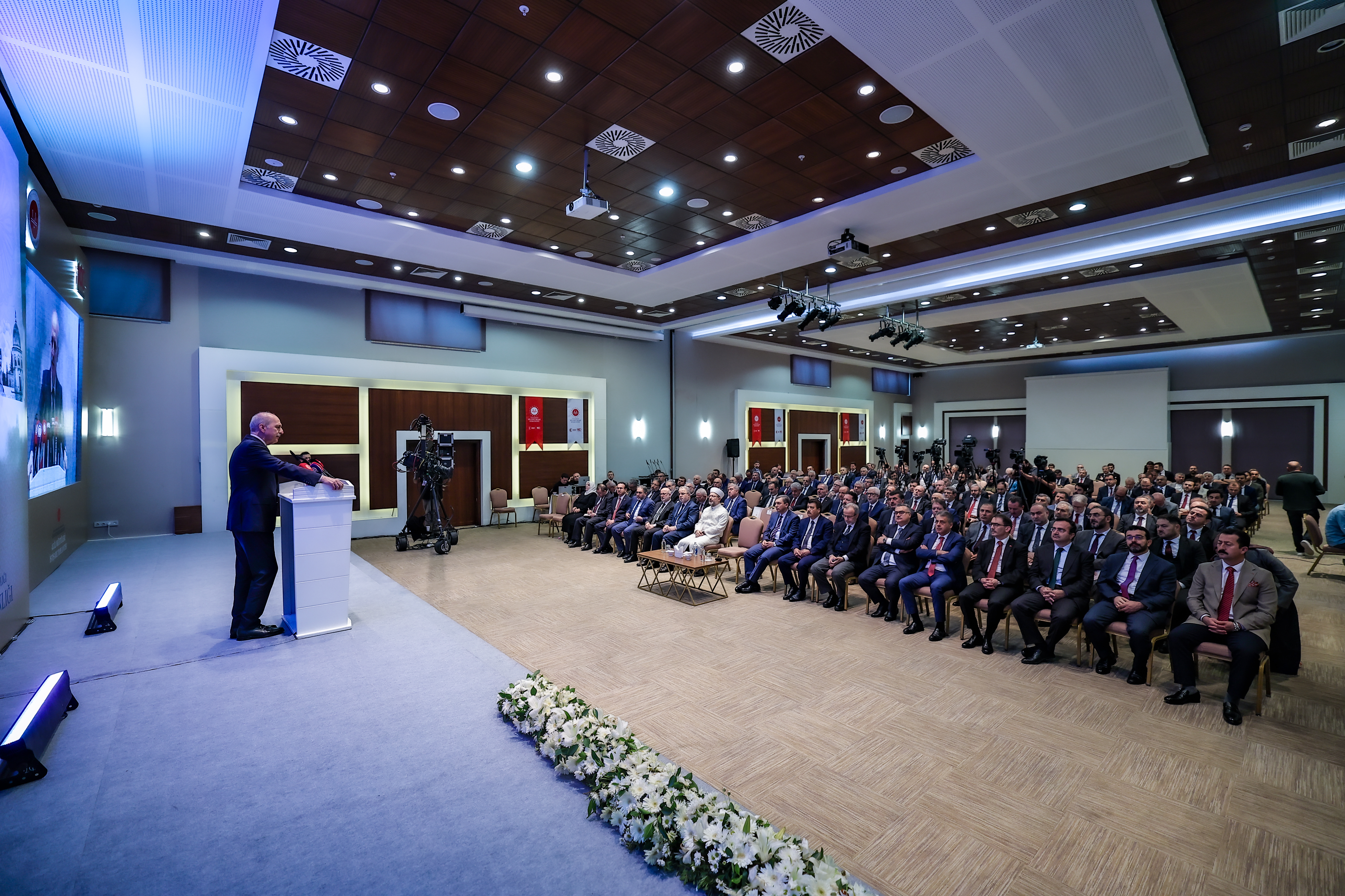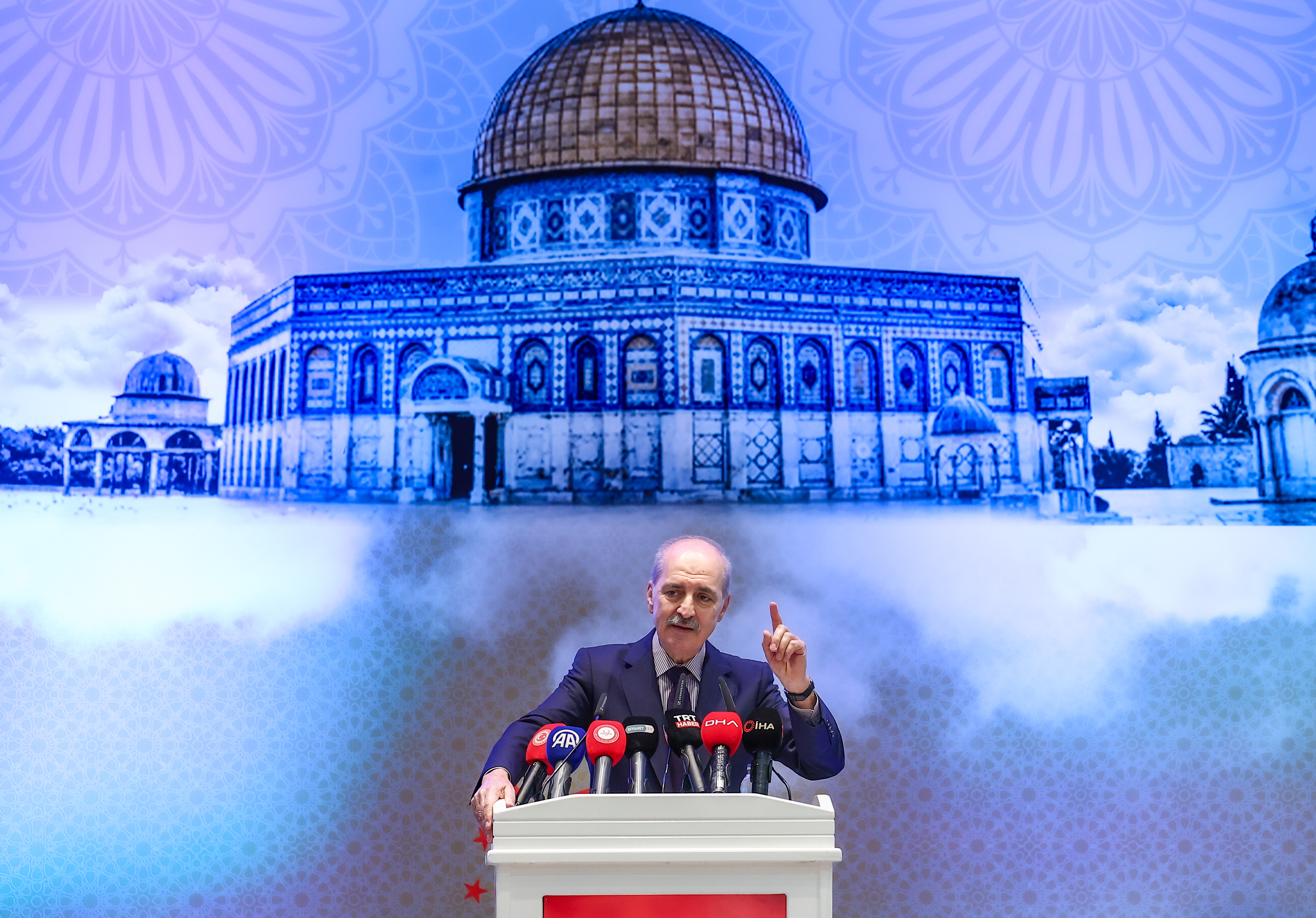 Önceki hafta 300 küsur bin kişi Londra'da büyük bir miting yapmıştı. Cumartesi günü yapılan mitingde 1 milyonu aşkın Londralı bir araya geldi ve Filistin'e destek için yürüyüş yaptı. Washington'da öyle, New York'ta öyle, Seul'de, Almanya'da, Fransa'da öyle. Artık bir taraftan insanlığın insafı, vicdanı harekete geçiyor. Dolayısıyla bizim dünyadaki bu çatışmaları, savaşları sona erdirecek yeni bir sistemi ortaya koymamızın vakti, zamanı gelmiştir. Bunun için bütün gücümüzle gayret sarf edeceğiz."