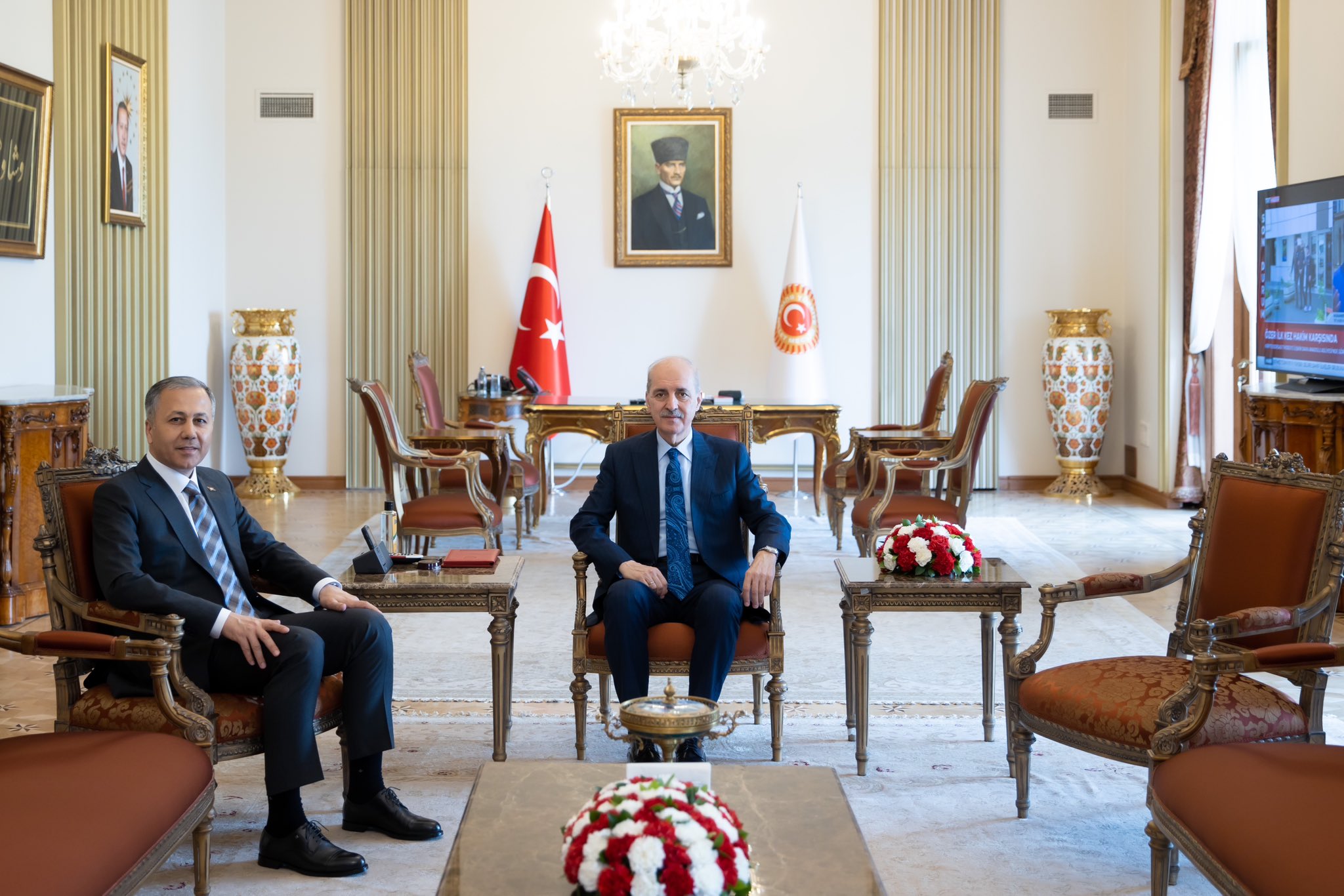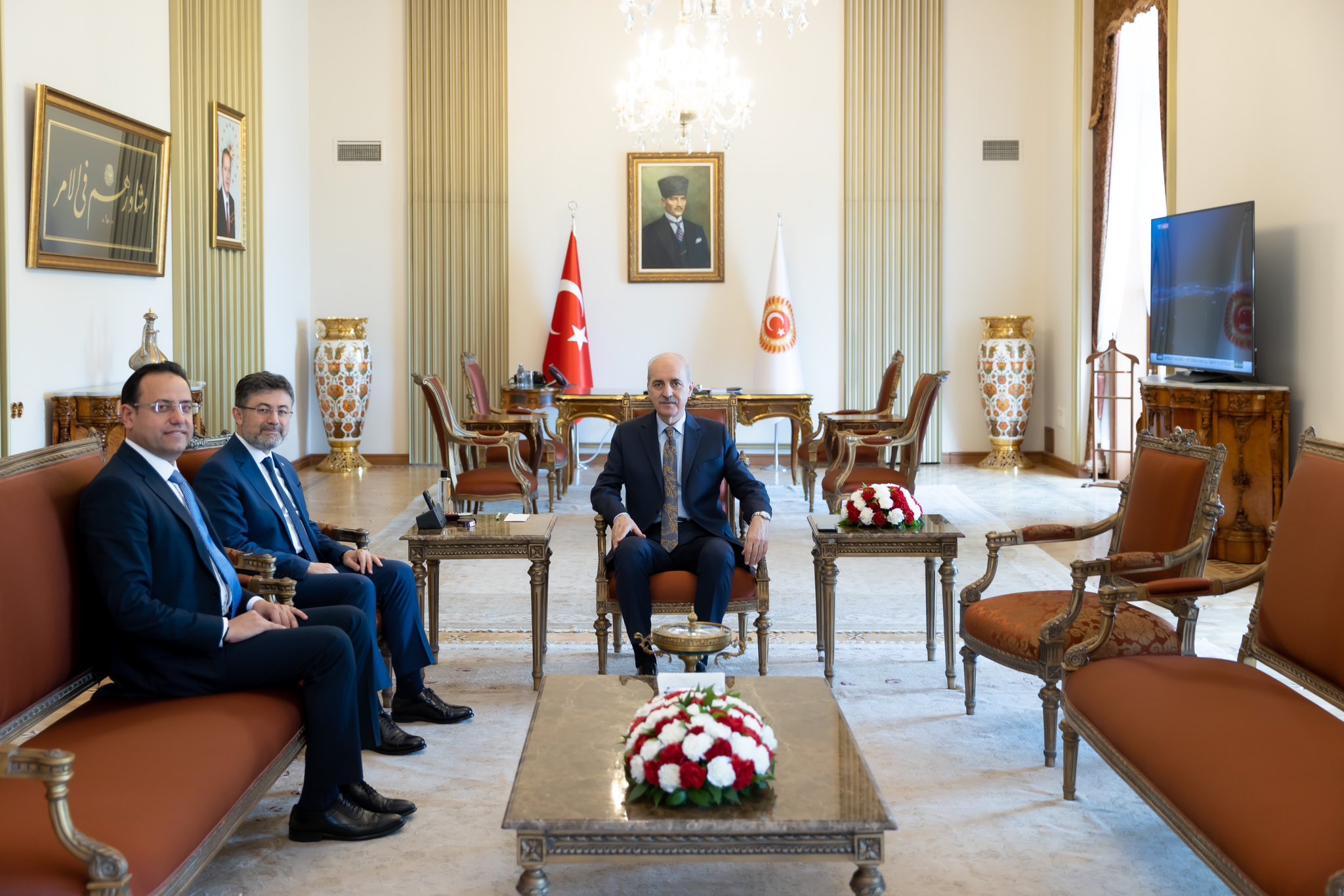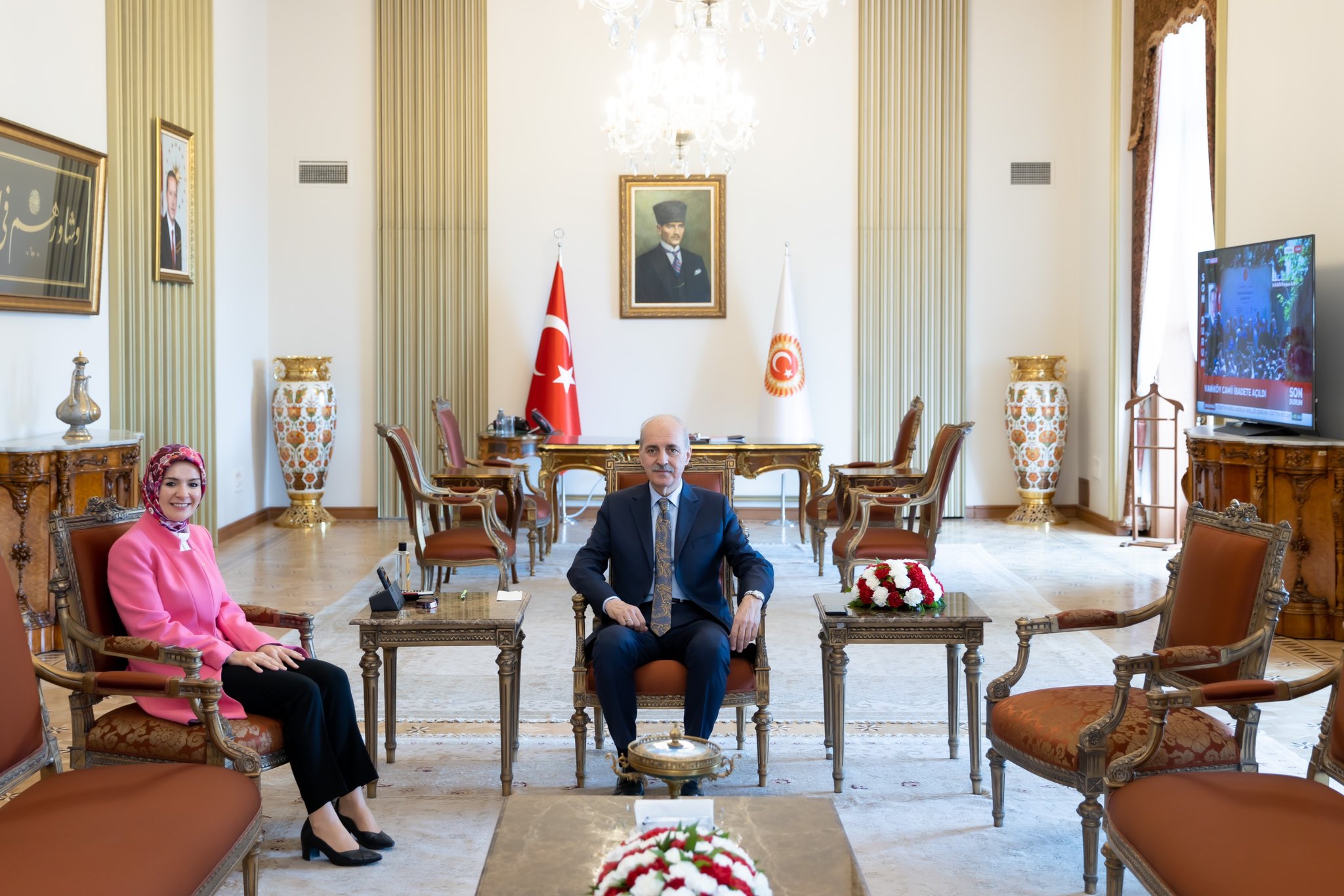 Türkiye Büyük Millet Meclisi (TBMM) Başkanı Numan Kurtulmuş, Çalışma ve Sosyal Güvenlik Bakanı Vedat Işıkhan, İçişleri Bakanı Ali Yerlikaya, Aile ve Sosyal Hizmetler Bakanı Mahinur Özdemir Göktaş ve Tarım ve Orman Bakanı İbrahim Yumaklı’yı makamında ayrı ayrı kabul etti.