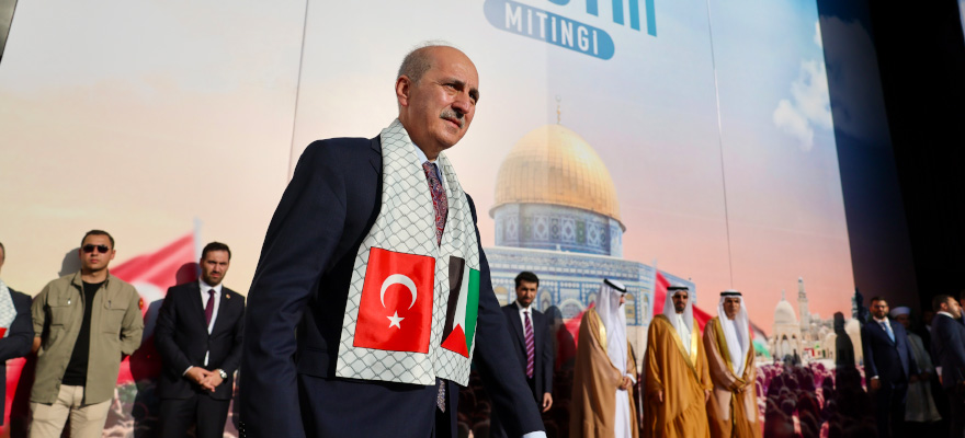 Türkiye Büyük Millet Meclisi (TBMM) Başkanı Numan Kurtulmuş, Cumhurbaşkanı Recep Tayyip Erdoğan’ın katılımıyla, İsrail'in Gazze'de yaptığı katliama tepki için İstanbul Atatürk Havalimanı'nda düzenlenen "Büyük Filistin Mitingi"ne iştirak etti.