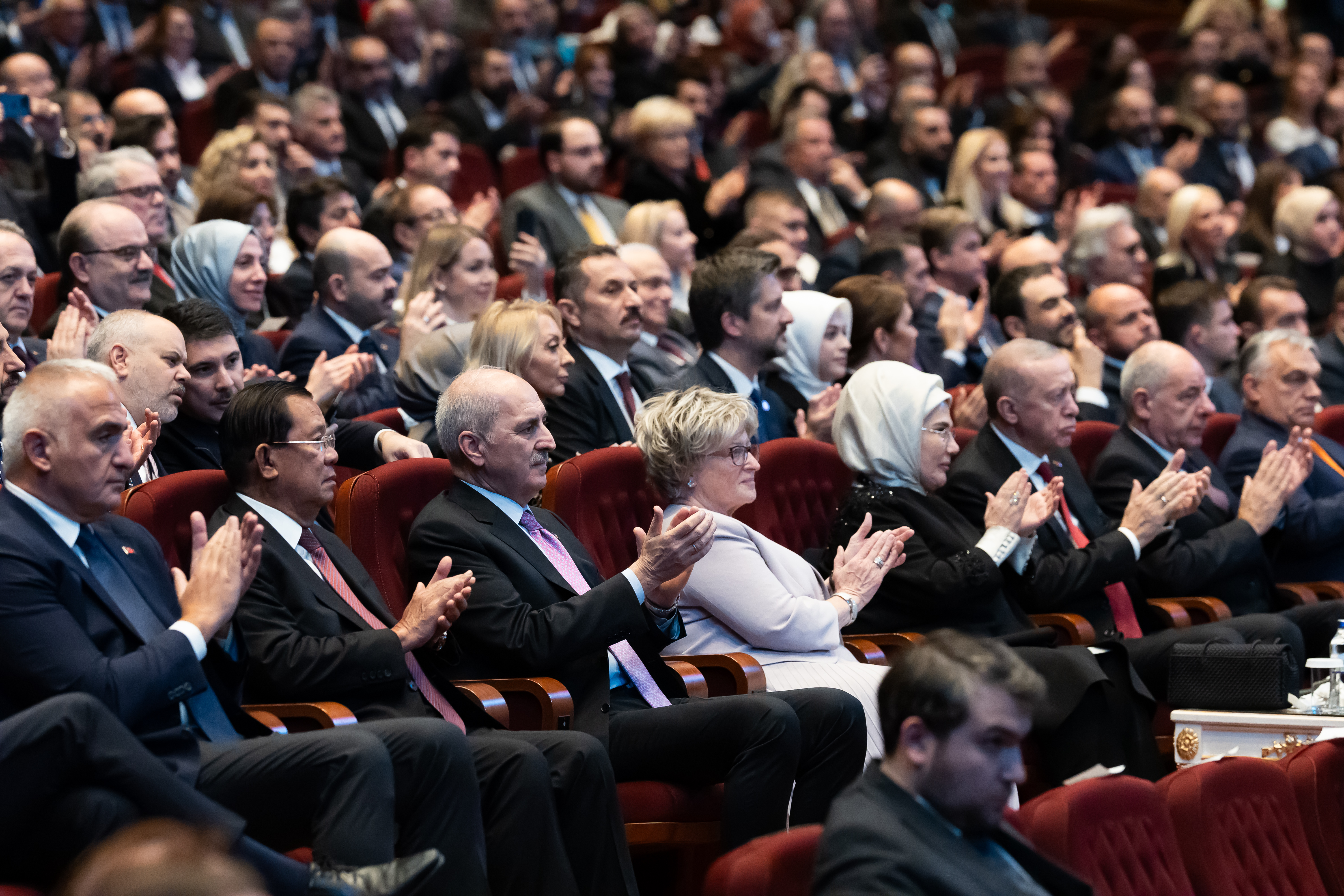 Öte yandan, Cumhurbaşkanı Erdoğan, etkinliğe katılan Kamboçya Senato Başkanı Hun Sen ile ayak üstü sohbet etti. Sohbete, TBMM Başkanı Numan Kurtulmuş da eşlik etti.