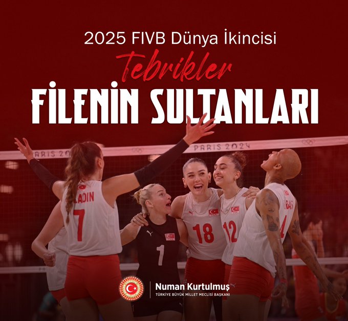TBMM Başkanı Numan Kurtulmuş, 2025 FIVB Dünya Şampiyonası’nda ikinci olan A Milli Kadın Voleybol Takımını tebrik etti.