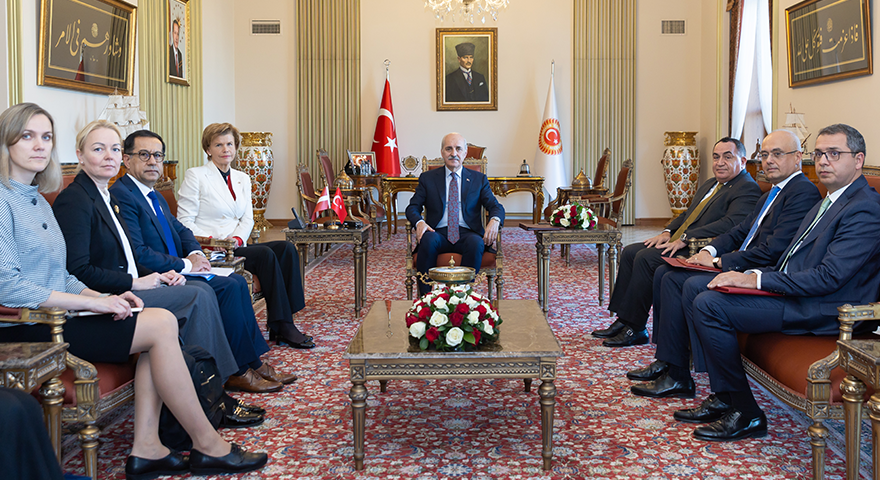Türkiye Büyük Millet Meclisi Başkanı Numan Kurtulmus, Letonya Dışişleri Bakanı Baiba Braze'yi kabul etti.