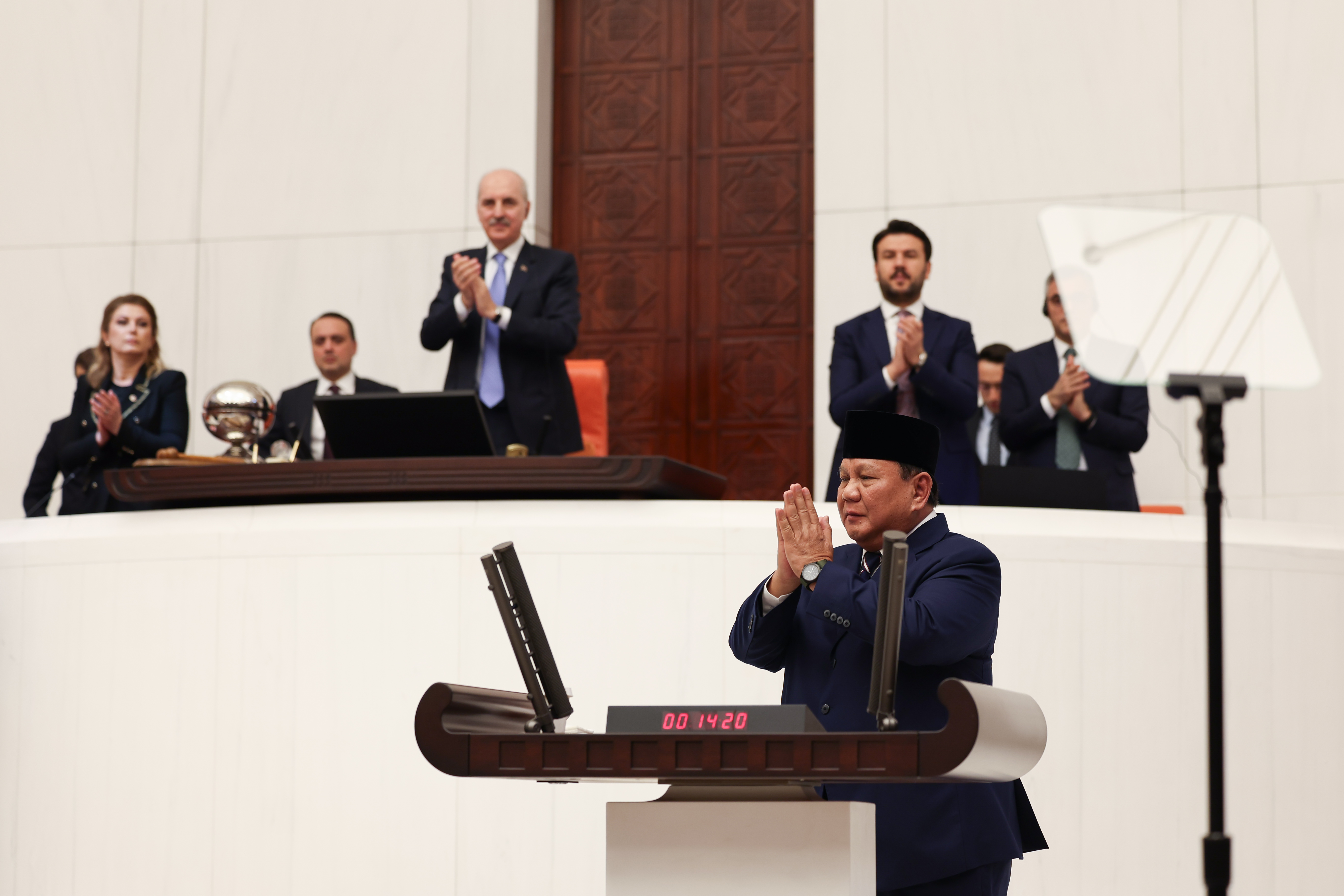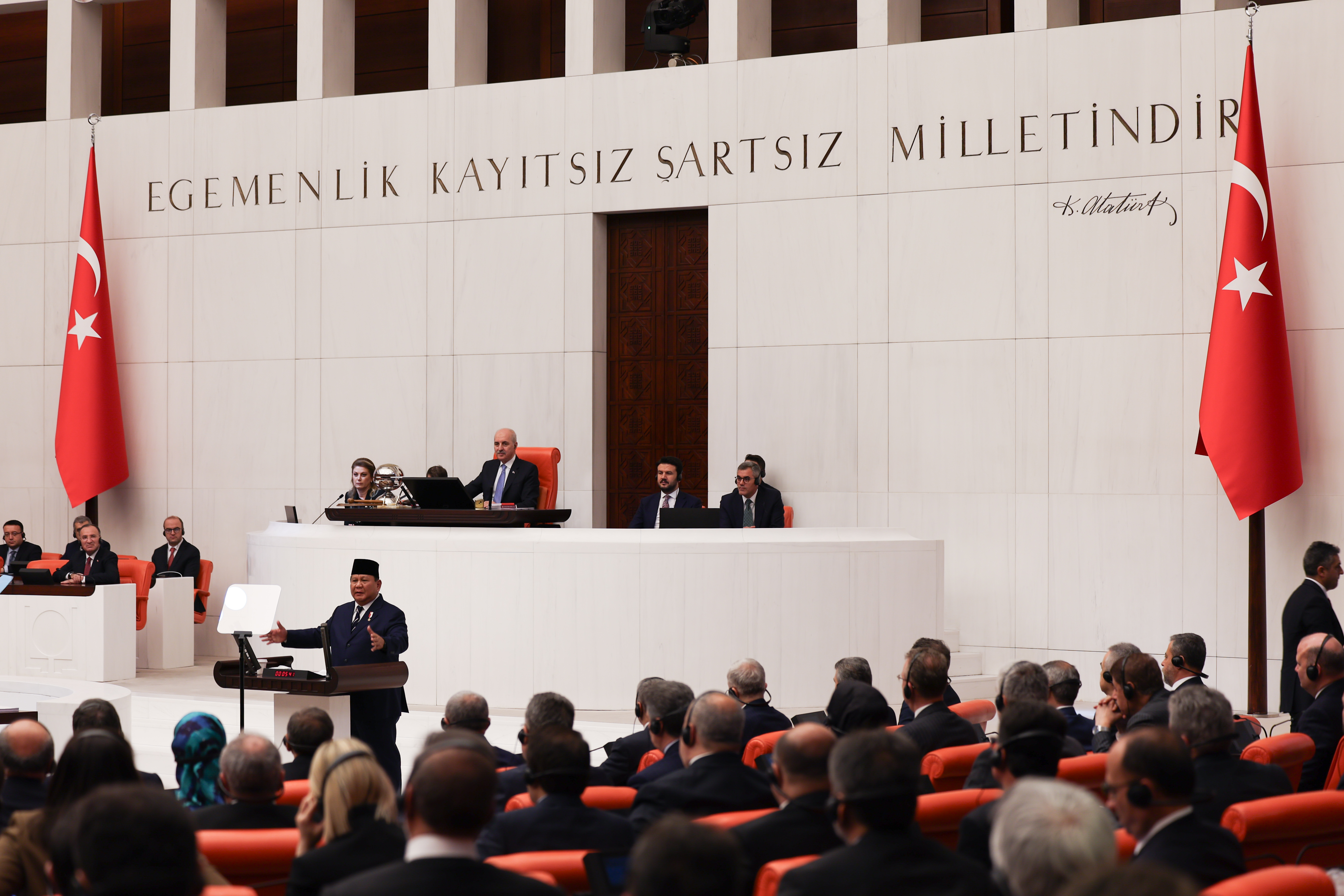 Endonezya Cumhurbaşkanı Subianto ise TBMM’de bulunmaktan duyduğu memnuniyeti dile getirerek, TBMM Genel Kurulu’na hitap etmenin kendisi için büyük bir onur olduğunu kaydetti. Subianto, Endonezya dışındaki bir meclise hitabının da ilk olacağını söyledi.