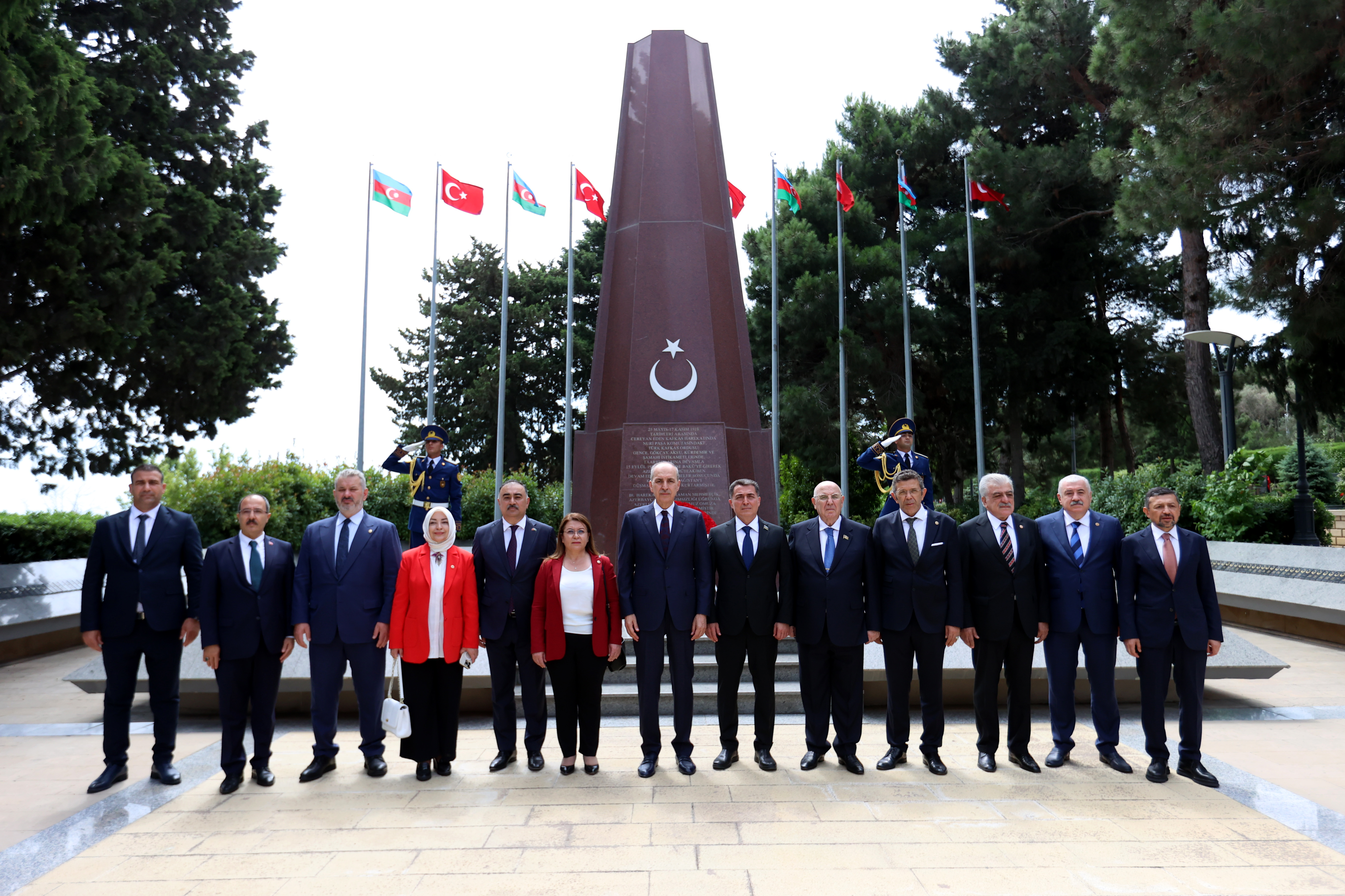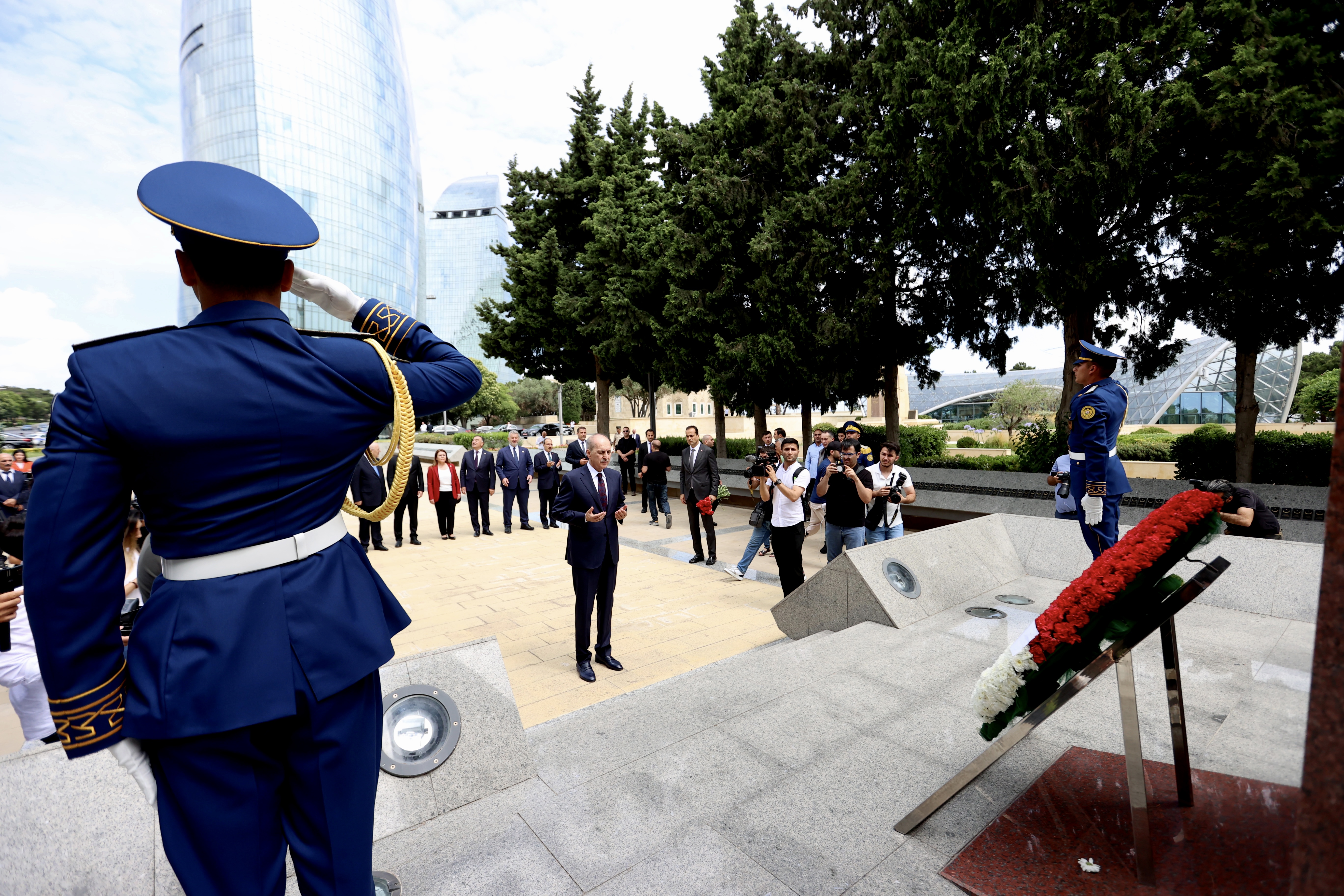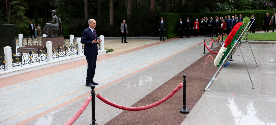 TBMM Başkanı Kurtulmuş ve beraberindeki parlamento heyeti önce merhum Cumhurbaşkanı Haydar Aliyev'in mezarına çelenk bıraktı.