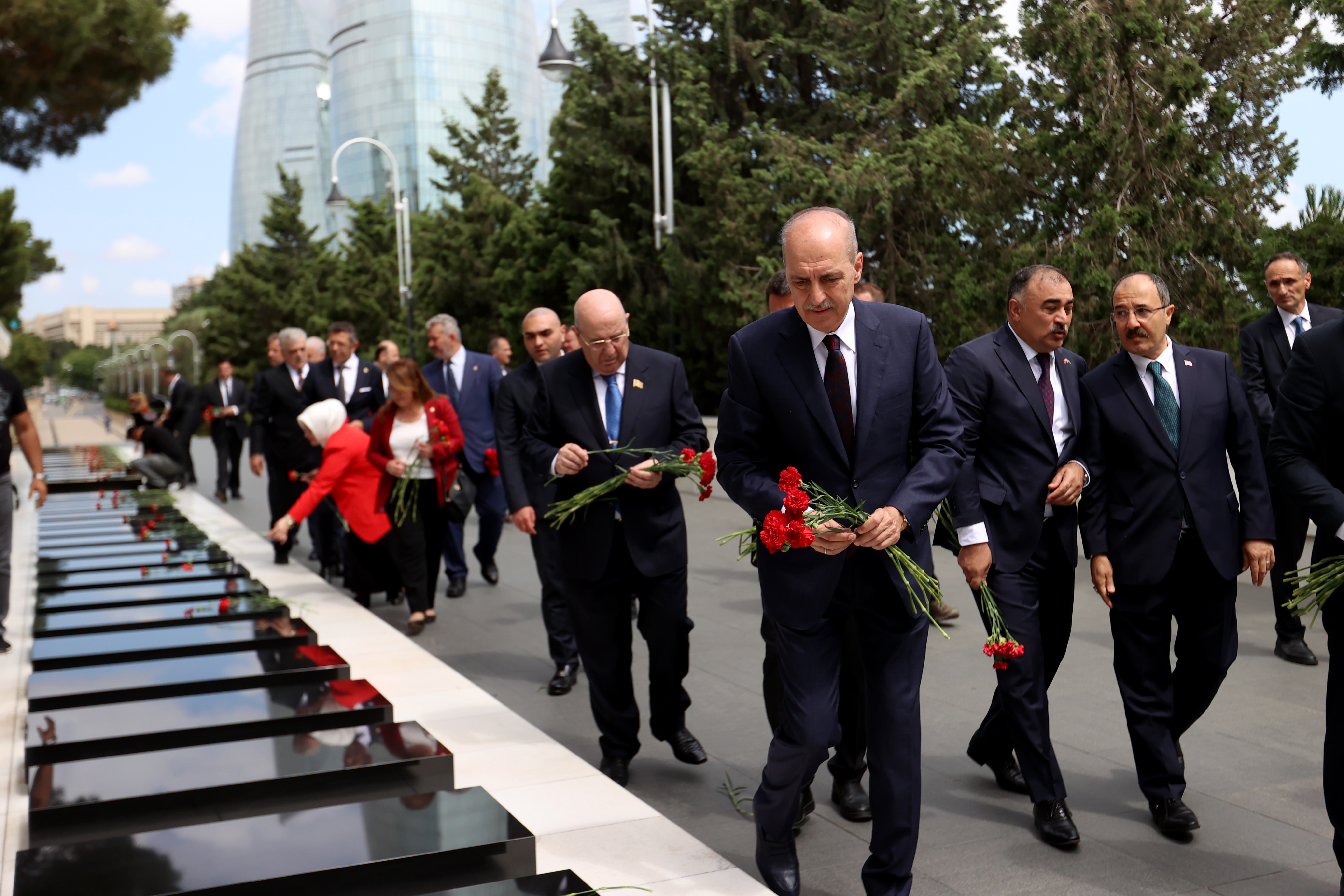 Kurtulmuş, daha sonra, Bakü Türk Şehitliği'ne geçerek anıta çelenk bıraktı.