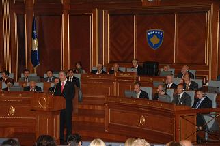 Kosova Meclisi Genel Kuruluna hitap eden Toptan, bağımsızlık ilanının