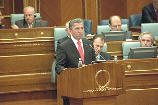 Kovosa Meclisi'nin özel oturumda milletvekillerine hitap eden Toptan'ın