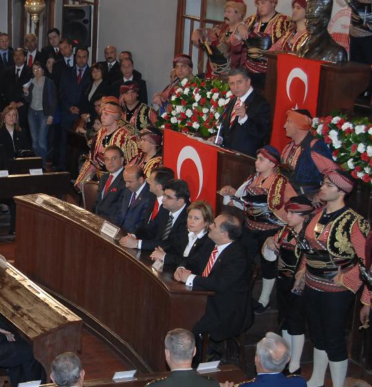 TBMM Başkanlık Divanı üyeleri, TBMM'de temsil edilen siyasi partilerin genel başkanları, bakanlar ve çok sayıda milletvekili, özgün haliyle korunmuş olan 23 Nisan 1920'nin Meclisi'nde, biraraya geldiler. 23 Nisan, Ulusal Egemenlik ve Çocuk Bayramı dolayısıyla, Birinci Meclis'te, düzenlenen anma toplantısında, TBMM Başkanı Toptan bir konuşma yaptı.
