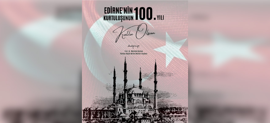TBMM Başkanı Prof. Dr. Mustafa Şentop, Edirne'nin düşman işgalinden kurtuluşunun 100. yılını kutladı.