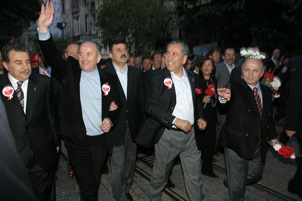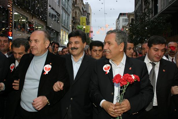 Önde bayrak ile flamaların yer aldığı kortej, Haydarpaşa Meslek Lisesi Bandosu eşliğinde Taksim Meydanı'na kadar yürüdü. Bülent Arınç, yürüyüş sırasında vatandaşların sevgi gösterilerine el sallayarak ve kırmızı-beyaz karanfiller atarak karşılık verdi.