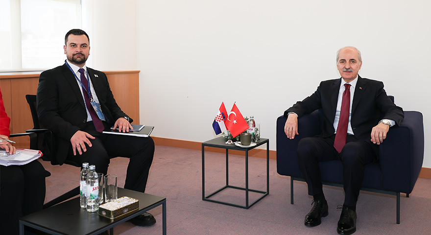 Türkiye Büyük Millet Meclisi (TBMM) Başkanı Numan Kurtulmuş, “Üç Deniz Girişimi Parlamenter Zirvesi”ne katılmak üzere bulunduğu Hırvatistan’ın başkenti Zagreb’deki Ulusal ve Üniversite Kütüphanesi’nde, Boşnak Ulusal Azınlık Konseyi Başkanı ve Hırvatistan-Türkiye Parlamentolararası Dostluk Grubu Başkanı Armin Hodzic’i kabul etti.