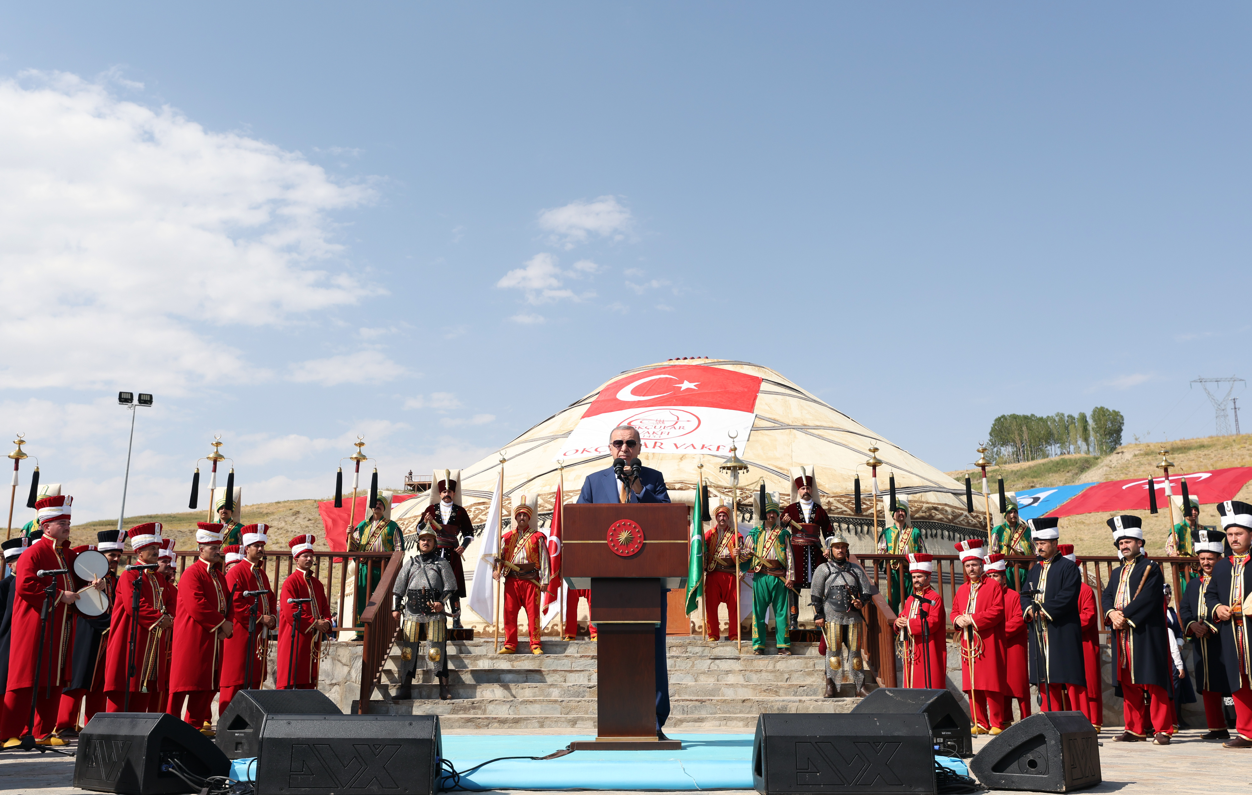 Cumhurbaşkanı Recep Tayyip Erdoğan, Malazgirt Zaferi'nin 951'inci yıl dönümü dolayısıyla Ahlat'taki etkinlik alanını ziyaretinde konuştu.