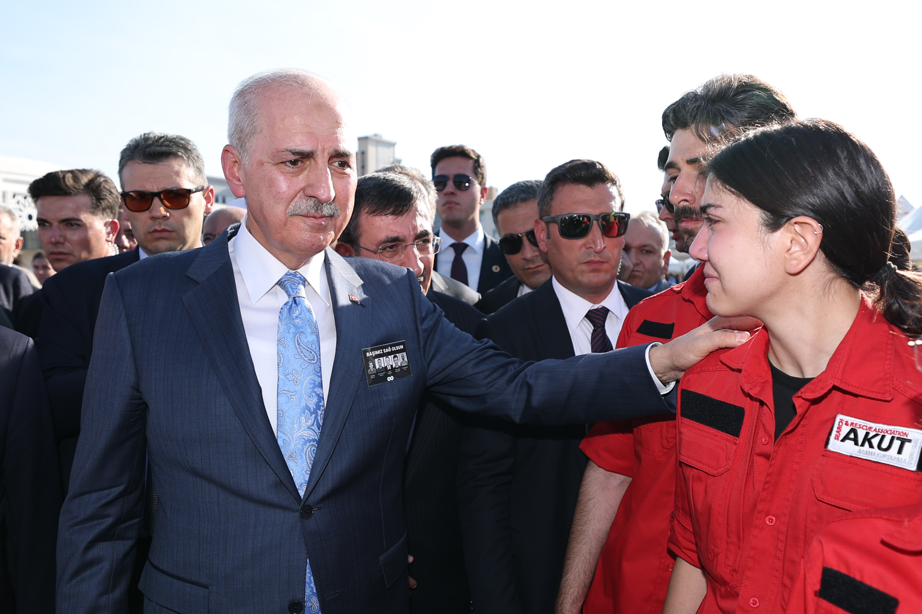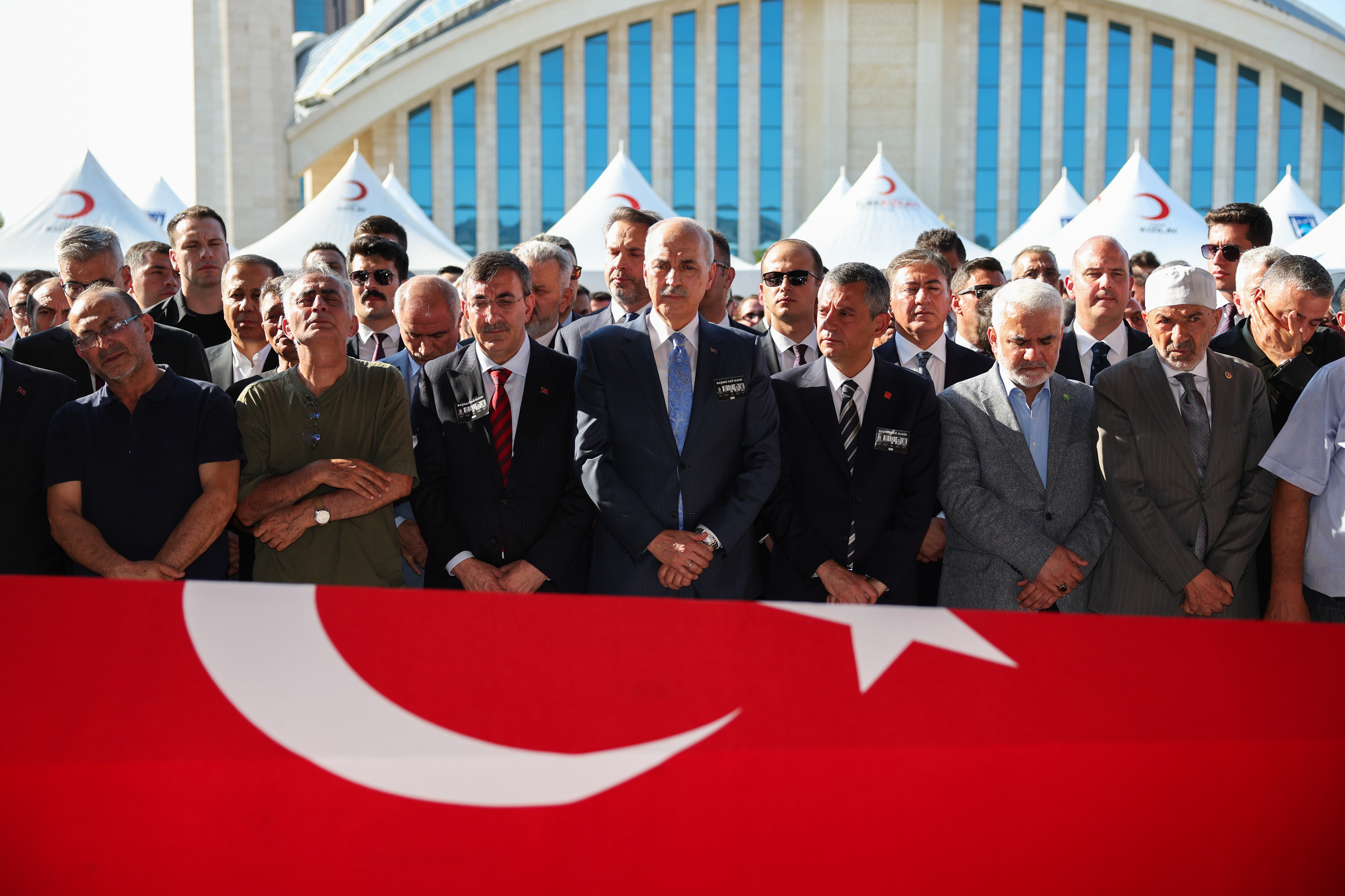 TBMM Başkanı Numan Kurtulmuş, Eskişehir'in Seyitgazi ilçesinde çıkan orman yangınıyla mücadele ederken şehit olan 5 AKUT gönüllüsü için Ankara'da düzenlenen cenaze törenine katıldı.
