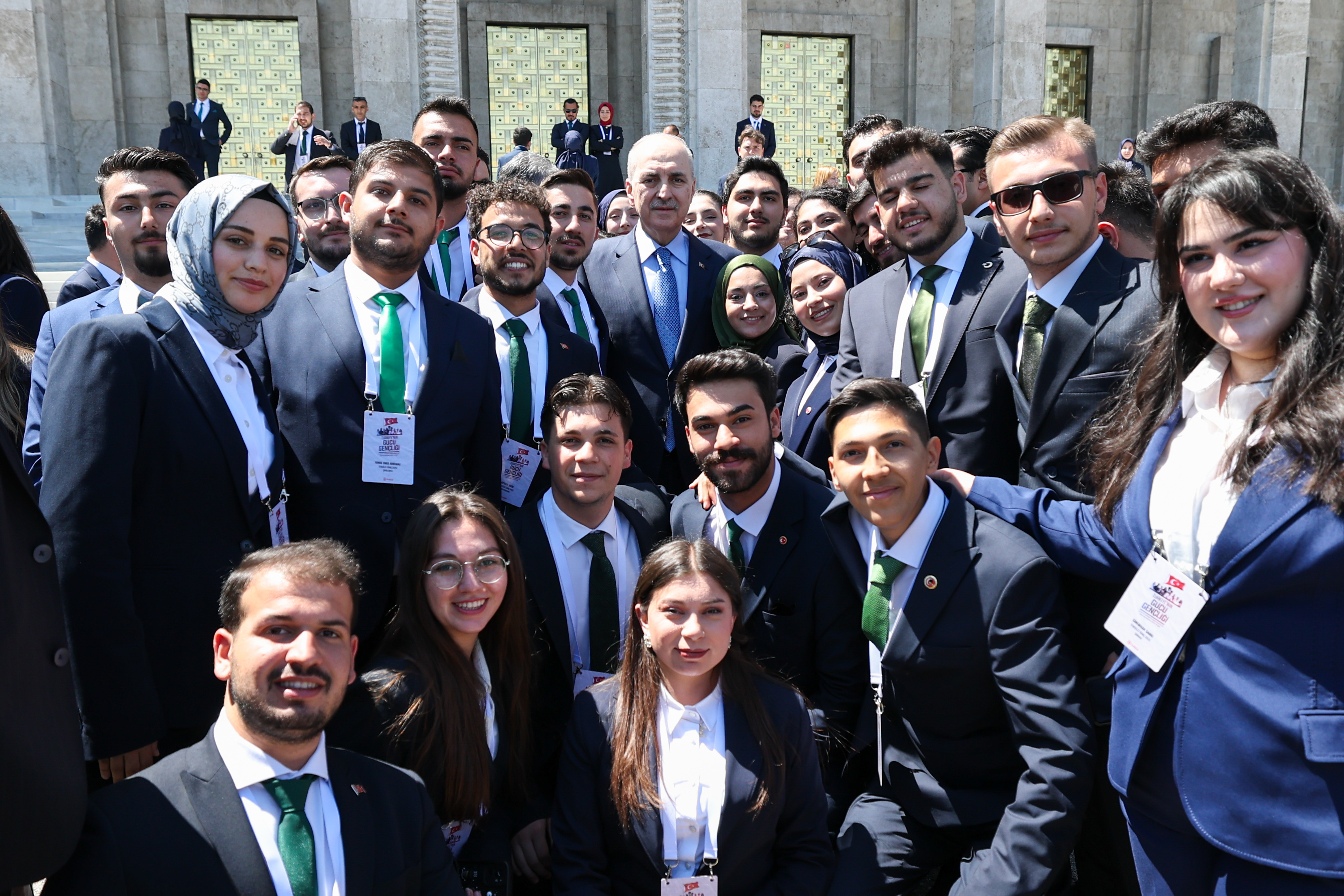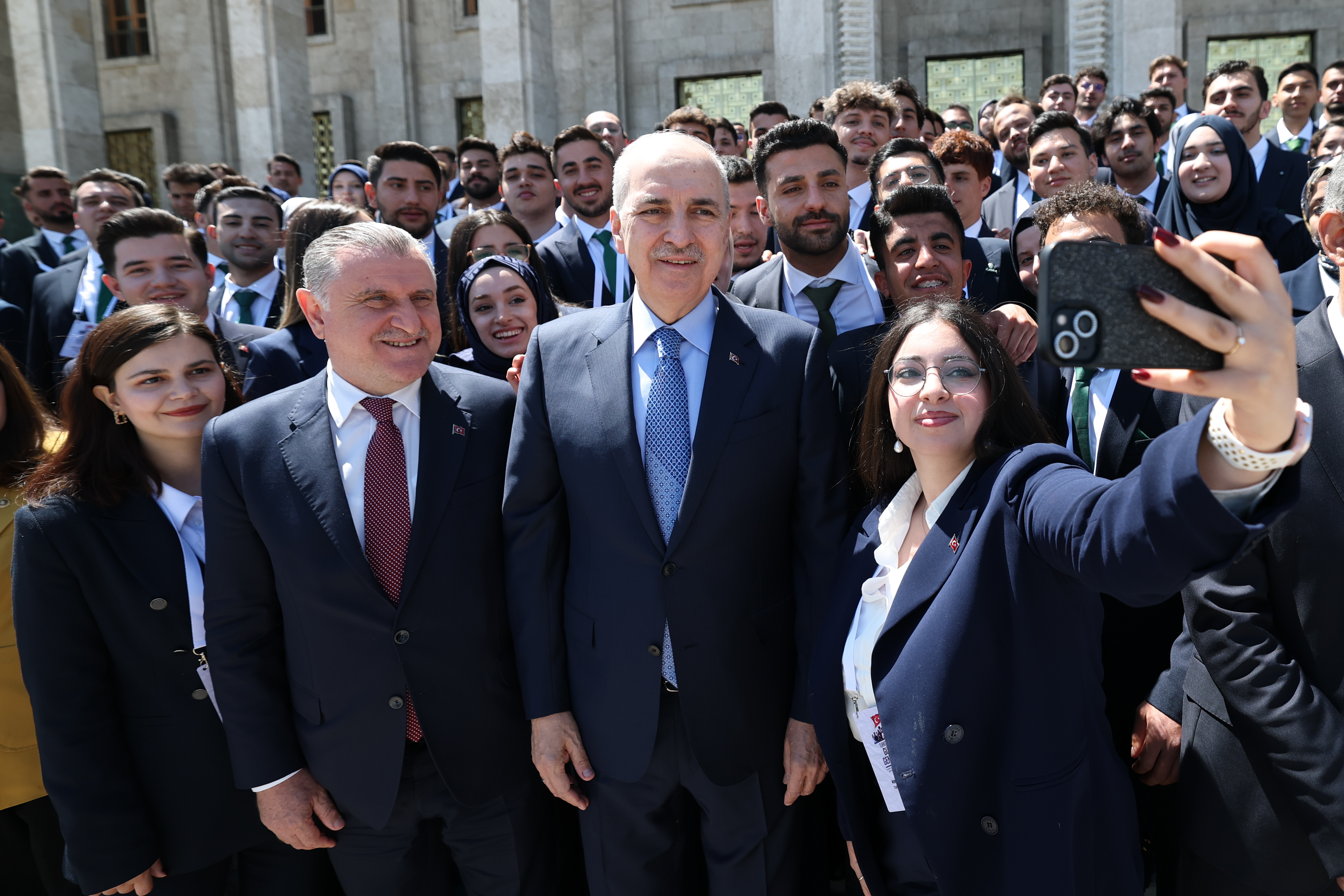 Kurtulmuş, Gençlik ve Spor Bakanı Osman Aşkın Bak ile 19 Mayıs Atatürk'ü Anma, Gençlik ve Spor Bayramı dolayısıyla 81 il ile 10 ülkeden gelen gençleri Meclis'te ağırladı.