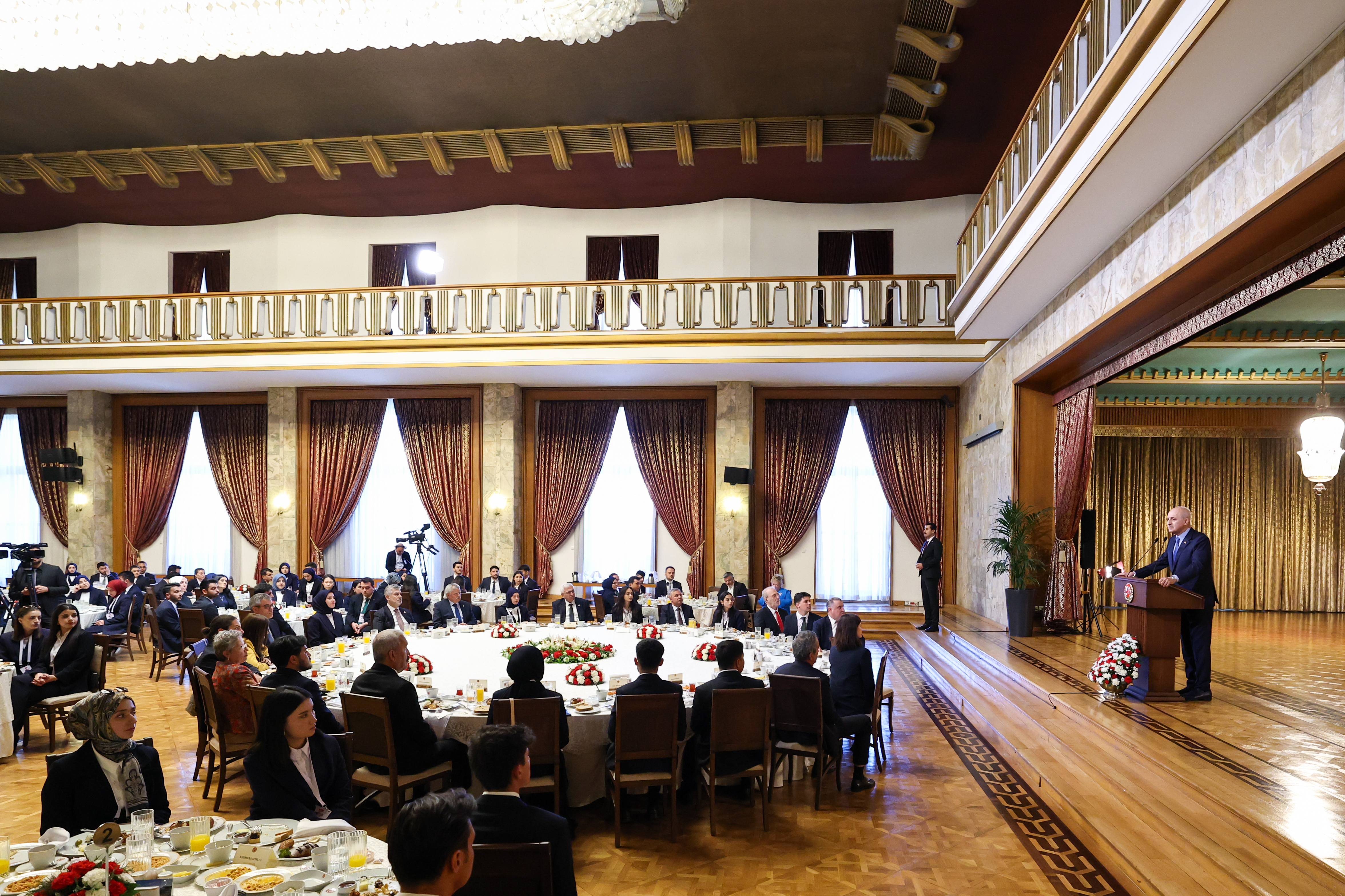 "Milli haysiyetimizi, milli şahsiyetimizi ve milli kimliğimizi asla unutmayacağız. Bu milletin en büyük gücü burasıdır. Bu kimlik üzerinde birlik içerisinde, beraberlik içerisinde 85 milyon olarak sadece 'ittifak' demiyoruz, kardeşlik duygusuyla yolumuza devam ediyoruz. Bu süreçte en büyük kazanımımız gençlerin gönlüne yerleşmiş olan özgüven duygusudur. Türkiye'nin gençlerinin nezdinde 'Yapamayız' diyeceğiniz hiçbir şey yoktur. Siz büyük bir öz güven duygusuna sahipsiniz. Bu özgüveninizi geliştirerek yola devam etmenizi istirham ediyoruz. Türkiye'nin bütün kurum ve kuruluşları da sizin emrinizdedir. Sizin güçlü bir geleceğe öncülük yapmanız için bütün kamu kaynaklarını seferber etmek de ülkeyi yönetenlerin boynunun borcudur."