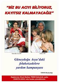 Bu konuda "Biz bu acıyı biliyoruz, kayıtsız kalmayacağız" başlığı ile hazırlanan afiş Meclis binalarına asıldı. Türkiye Büyük Millet Meclisi Başkanı Bülent Arınç, kampanyada 500 YTL (500 milyon lira) ile ilk bağışı gerçekleştirdi.