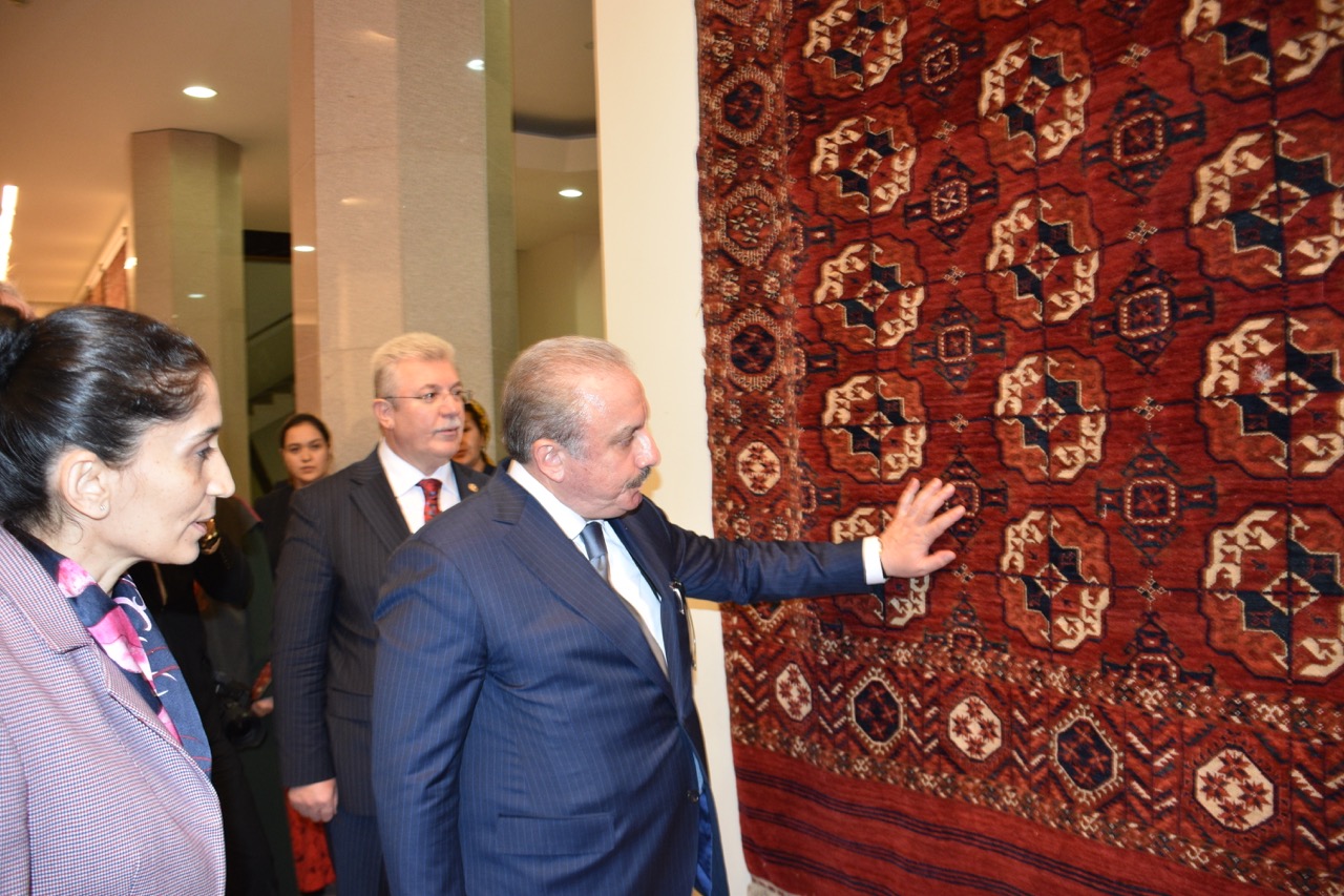 Daha sonra Türkmen Milli Halı Müzesini gezen Şentop, Türkmen kültürünün önemli değeri el dokuma halı ve kilimlerini görme fırsatı buldu.