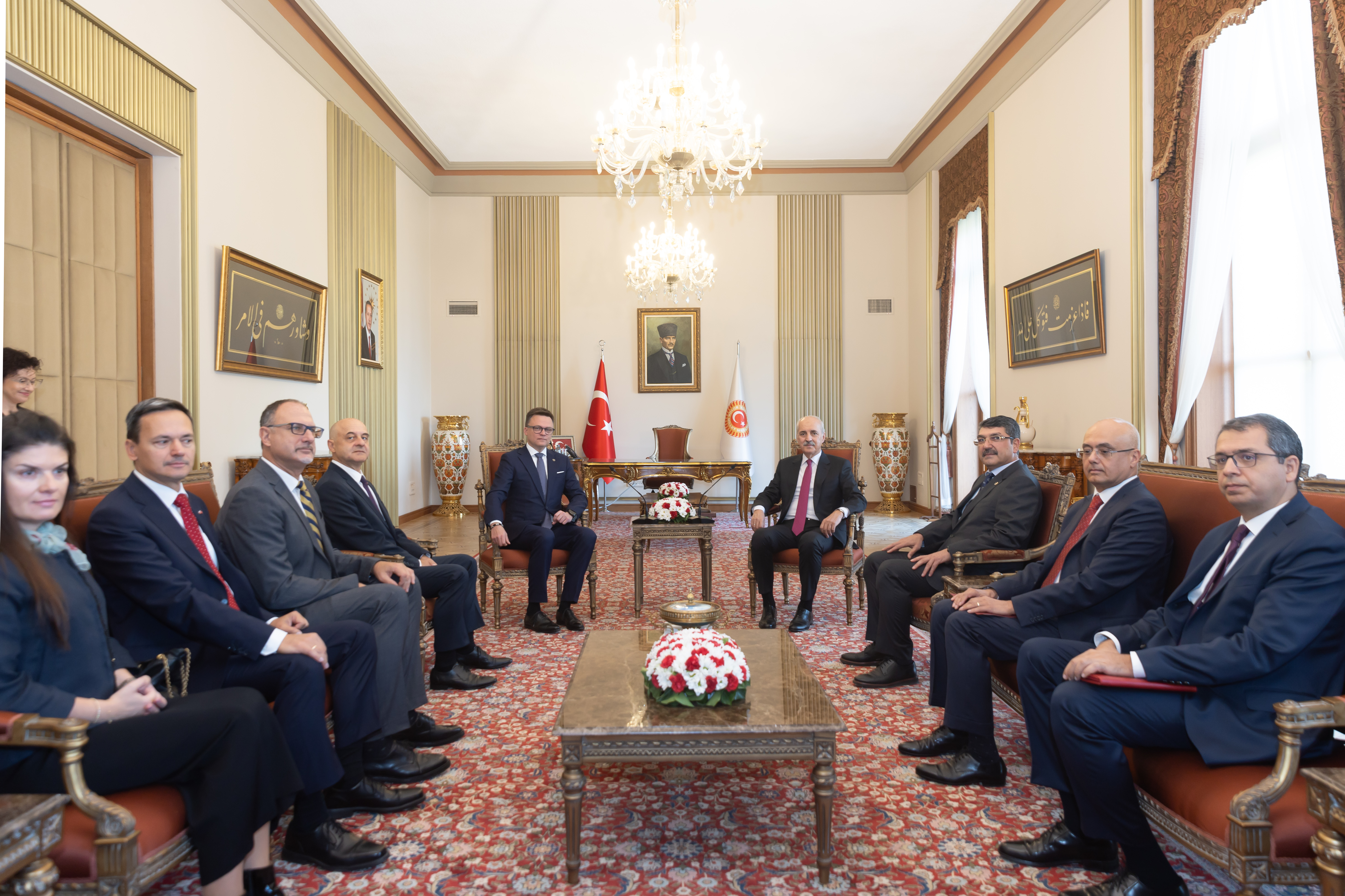 Kurtulmuş, Holownia ve heyetini TBMM’de ağırlamaktan duyduğu memnuniyeti dile getirerek, Türkiye-Polonya arasında her alanda var olan tarihi ilişkilerin stratejik işbirliği seviyesinde olduğunu ve her geçen gün bu ikili ilişkilerin artmasından da memnuniyet duyduklarını belirtti.
