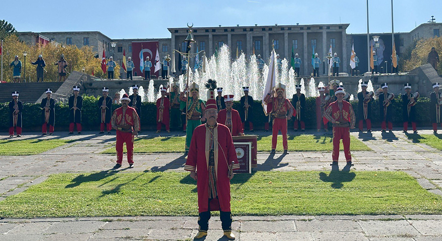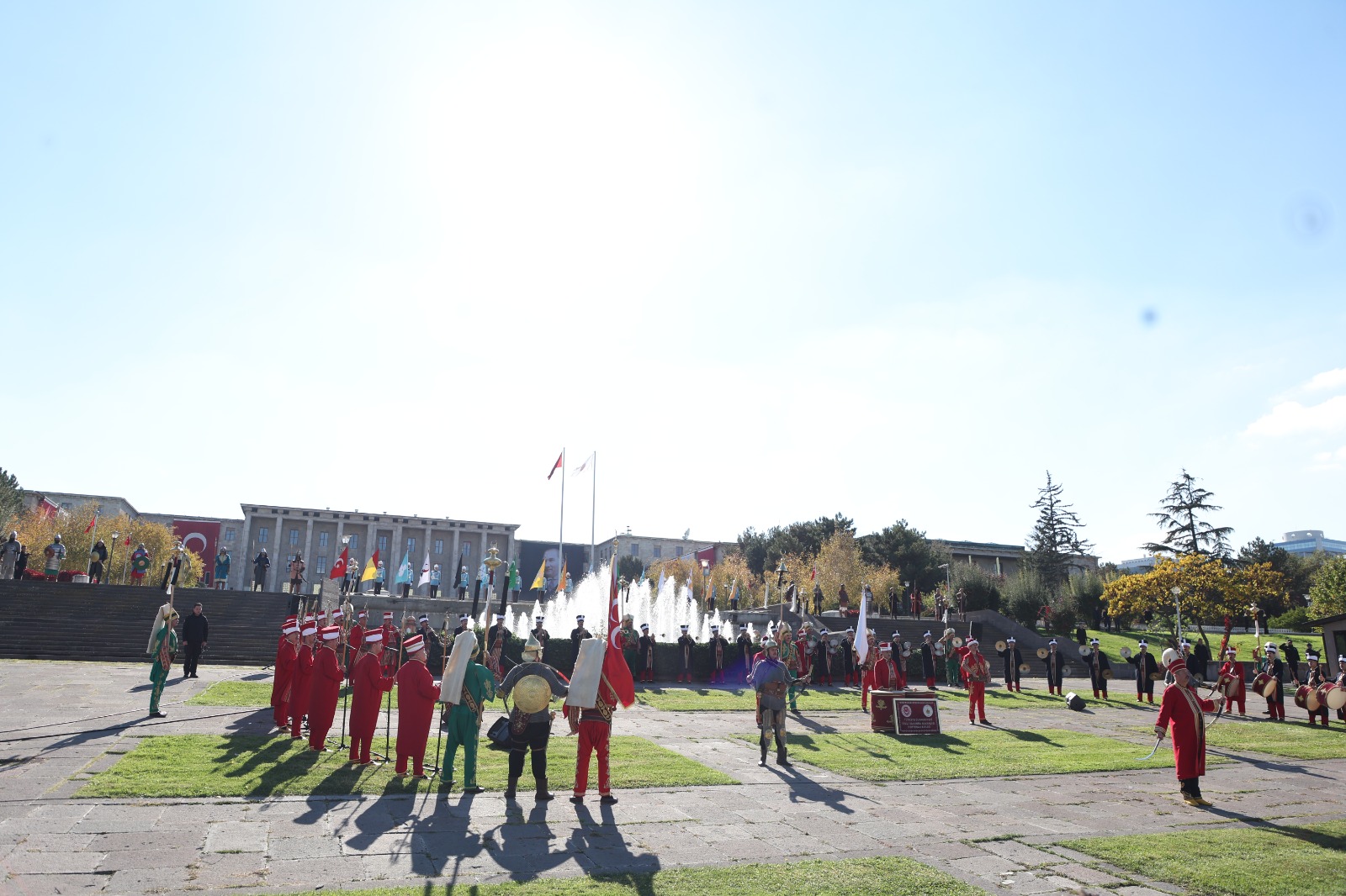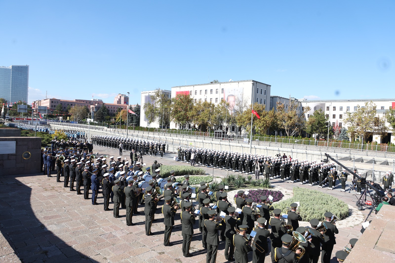 Mehteran Birliği ve TSK karma bando ekibi, saygı duruşu ve İstiklal Marşı’nın okunmasının ardından TBMM önünden Birinci Meclis binasına kadar yapılan kortej yürüyüşüne katıldı.