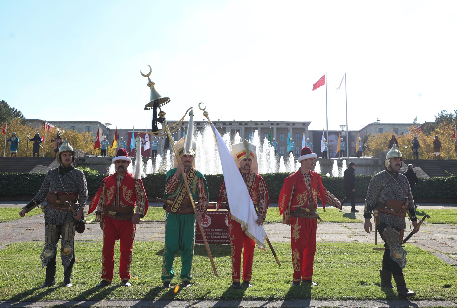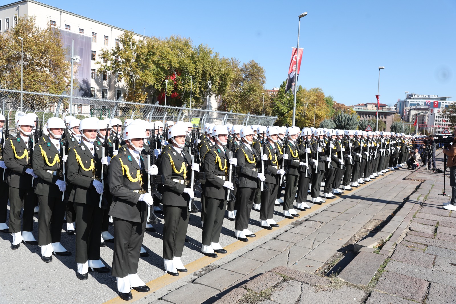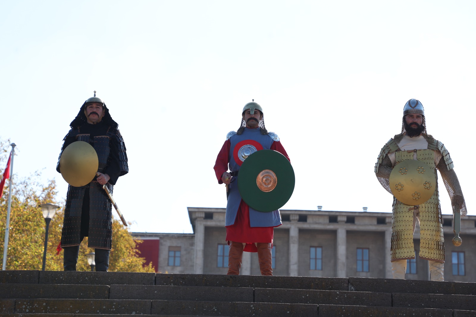 Mehteran Birliği ve TSK karma bando ekibi, saygı duruşu ve İstiklal Marşı’nın okunmasının ardından TBMM önünden Birinci Meclis binasına kadar yapılan kortej yürüyüşüne katıldı.