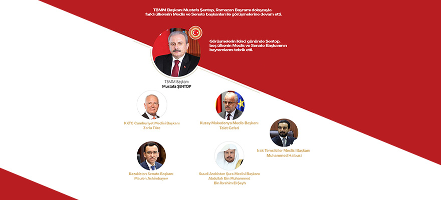 TBMM Başkanı Prof. Dr. Mustafa Şentop, Ramazan Bayramı dolayısıyla, bazı ülkelerin Meclis ve Senato başkanlarıyla telefonda görüşerek Ramazan Bayramlarını tebrik etmeye devam etti.