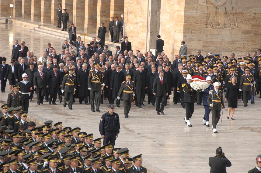 Cumhurbaşkanı Abdullah Gül'ün başkanlığındaki devlet erkanı, Aslanlı Yol'dan yürüyerek Türkiye Cumhuriyeti'nin kurucusu Ulu Önder Atatürk'ün