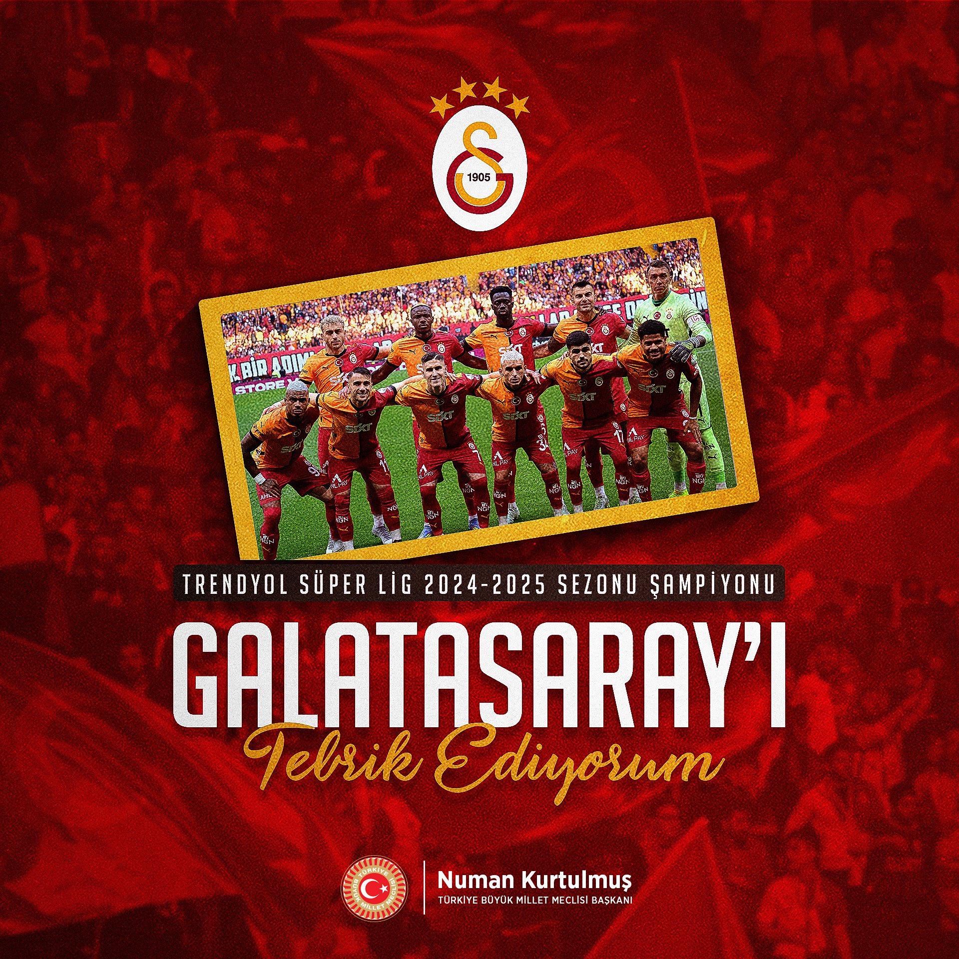 “Trendyol Süper Lig 2024-2025 sezonu şampiyonu Galatasaray’ı ve Galatasaray camiasını tebrik ediyorum.”
