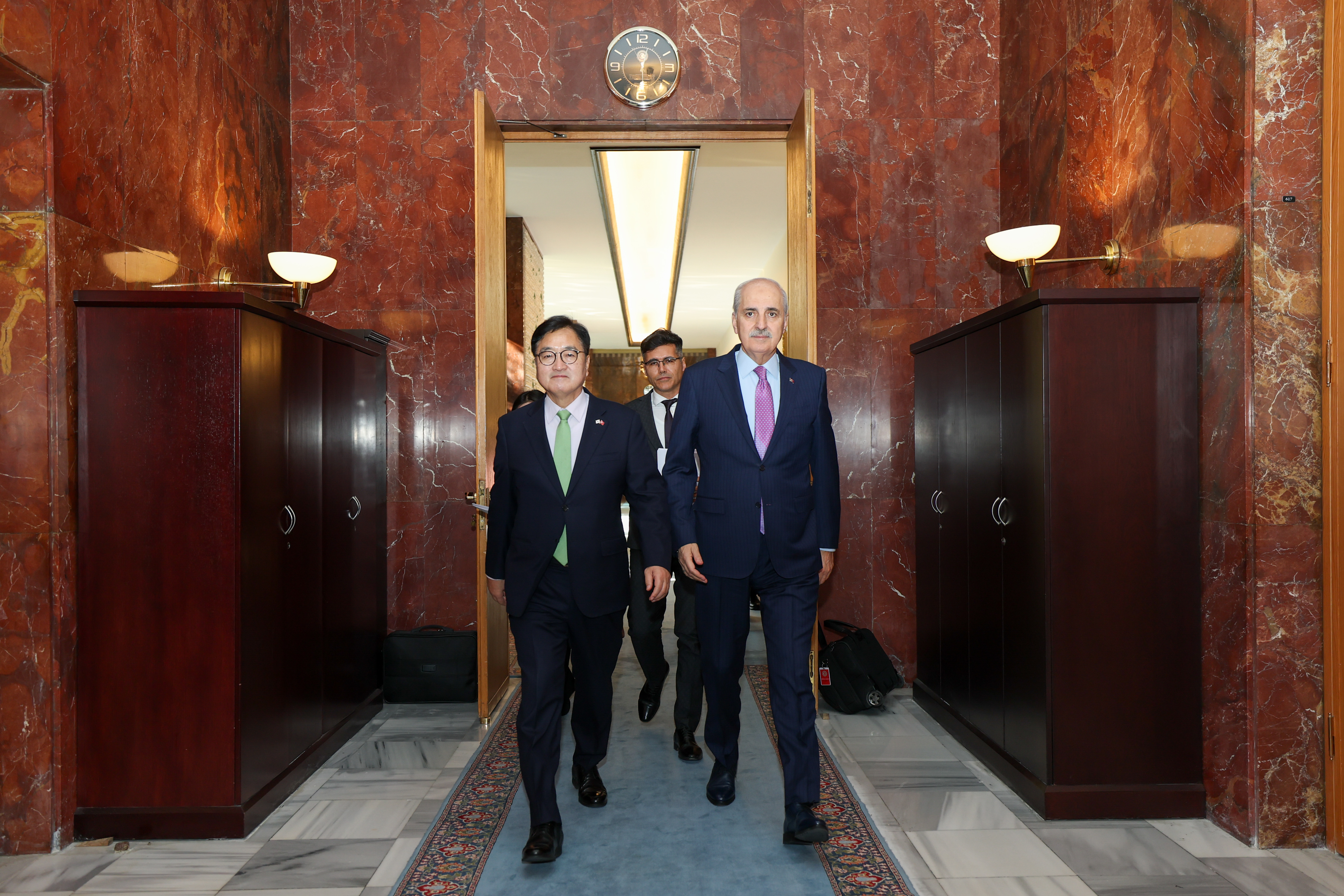 Meclis Başkanı Kurtulmuş, Türkiye’ye resmi ziyaret gerçekleştiren Kore Cumhuriyeti Ulusal Meclisi Başkanı Woo Wonshik ile Meclis’te bir araya geldi.