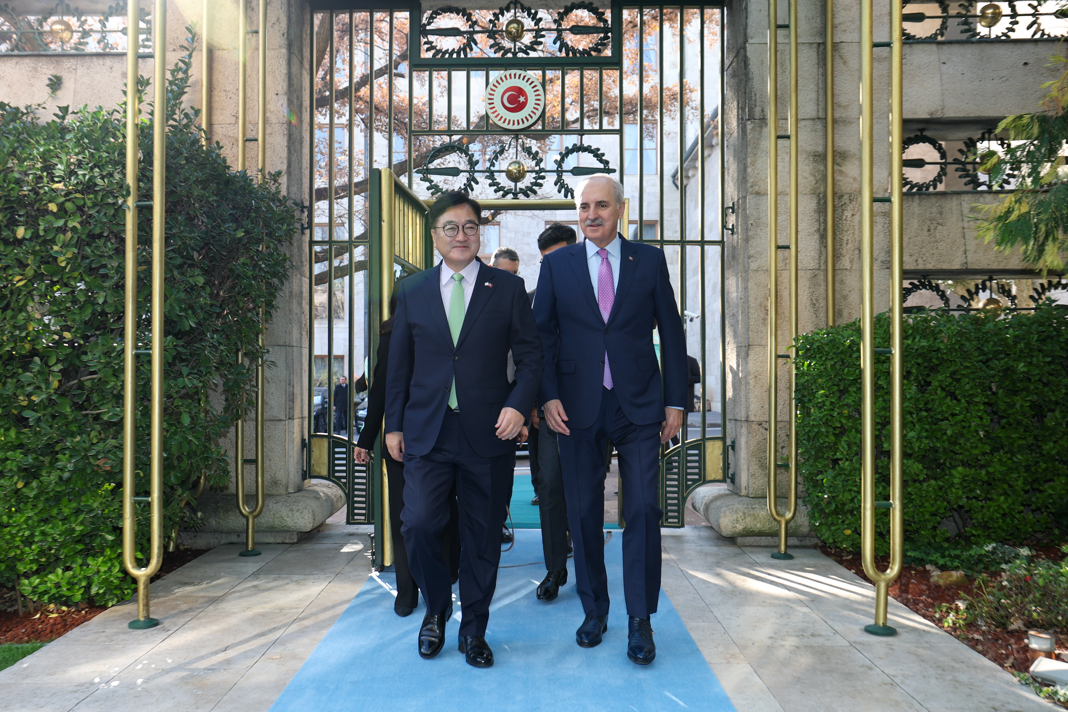 Daha sonra TBMM Başkanı Kurtulmuş ve Kore Cumhuriyeti Ulusal Meclisi Başkanı Wonshik baş başa görüşme gerçekleştirdi, heyetler arası toplantıya başkanlık yaptı.