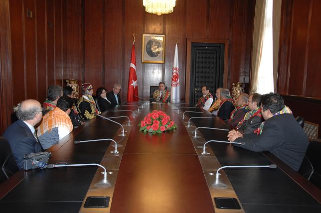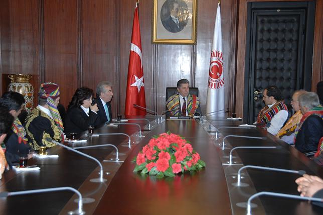 TBMM Başkanı Köksal Toptan, Oğuz Boyları Konfederasyonu Genel Başkanı Hasan Demiraslan ve beraberindeki yönetim kurulu üyelerini TBMM Başkanlık Divan Salonu'nda kabul etti.