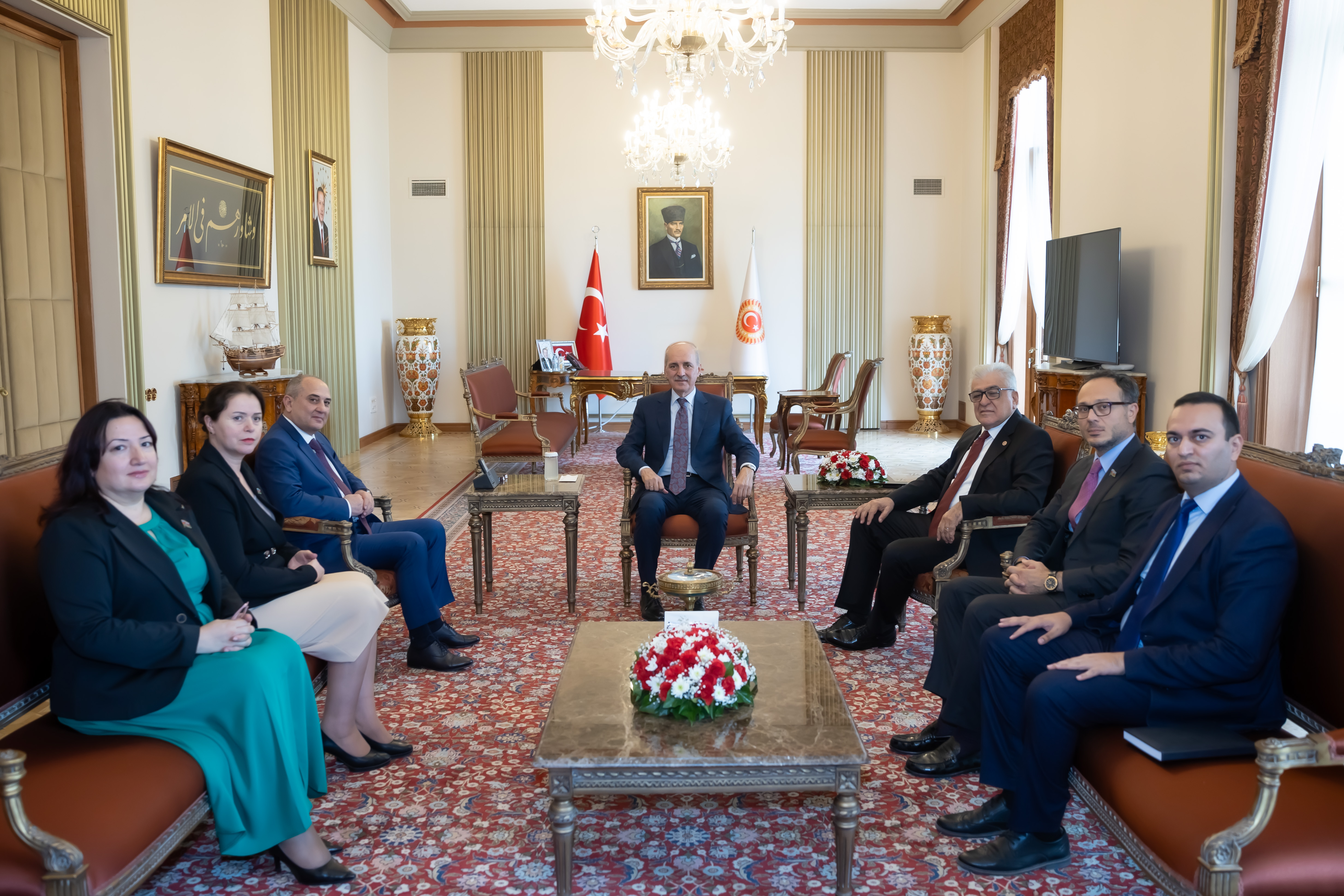 Kurtulmuş, Meclis'teki makamında, Yeni Azerbaycan Partisi Genel Başkanvekili Tahir Budagov ve beraberindeki heyeti kabul etti.