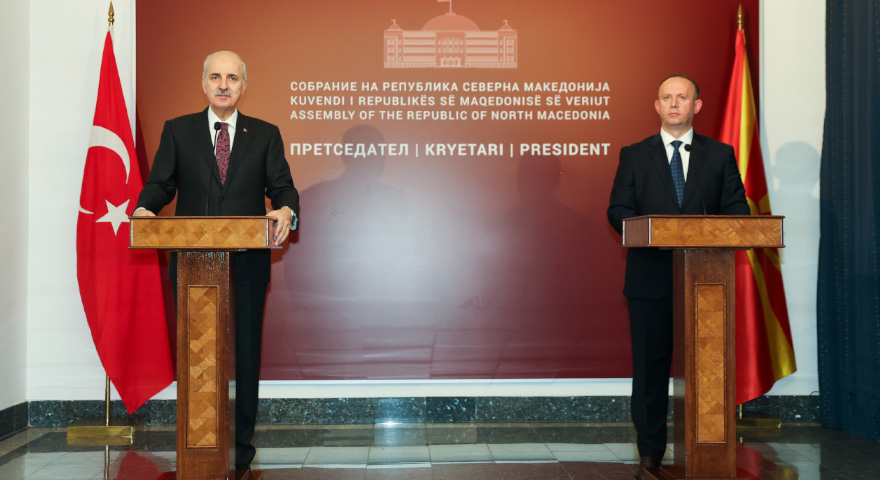 Kurtulmuş, resmi ziyaret kapsamında gittiği Üsküp'te, Kuzey Makedonya Meclis Başkanı Afrim Gaşi ile görüşmesinin ardından ortak basın toplantısı düzenledi.