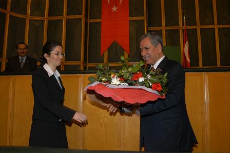 TBMM Başkanı Arınç'ın konuşmasının ardından uzman yardımcıları kendilerini tanıttılar ve Arınç ile fotoğraf çekildiler. Bir uzman yardımcısı da Meclis Başkanı Arınç'a çiçek sundu.