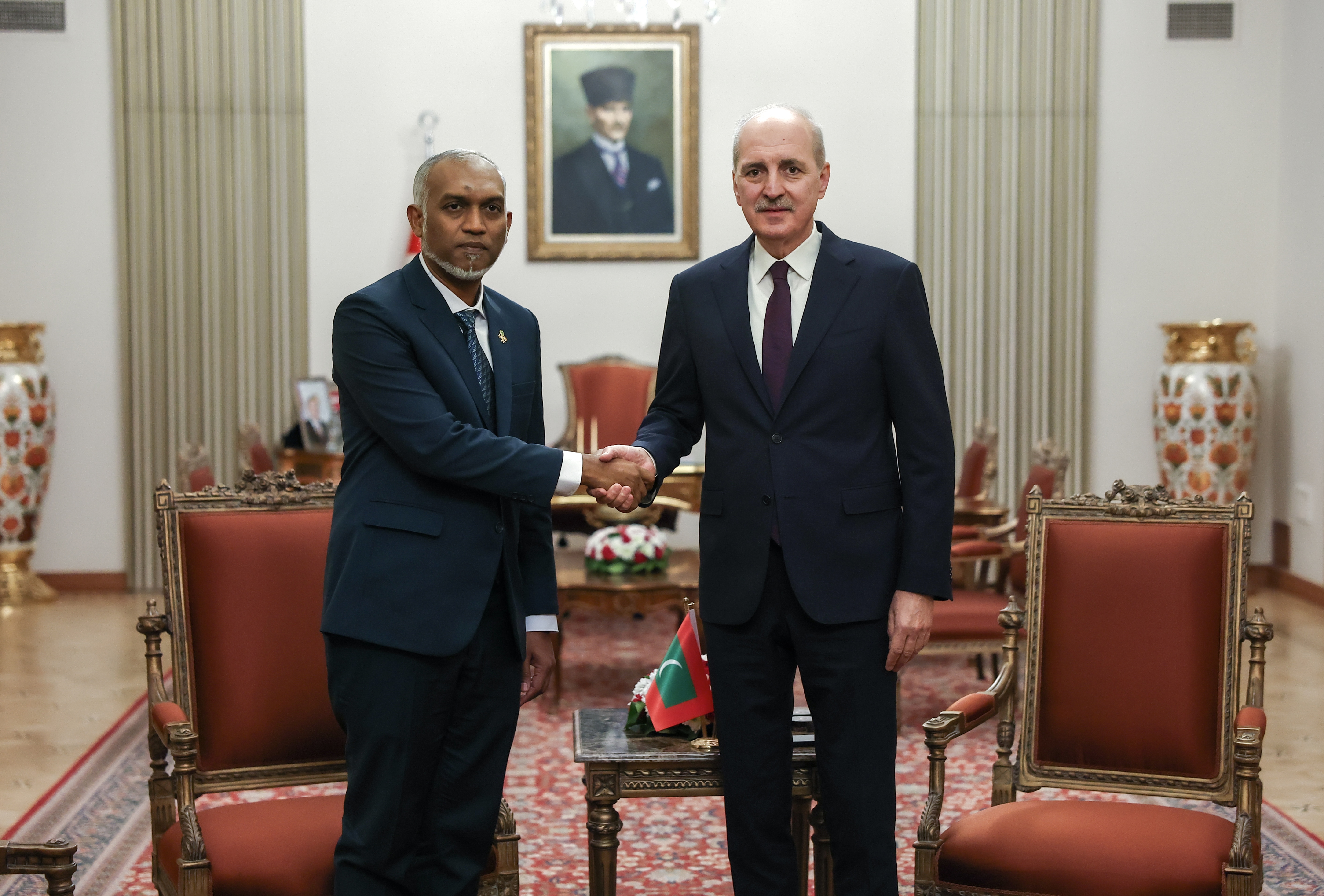 TBMM Başkanı Numan Kurtulmuş, Maldivler Cumhurbaşkanı Muhammed Muizzu ile Meclis'te bir araya geldi.