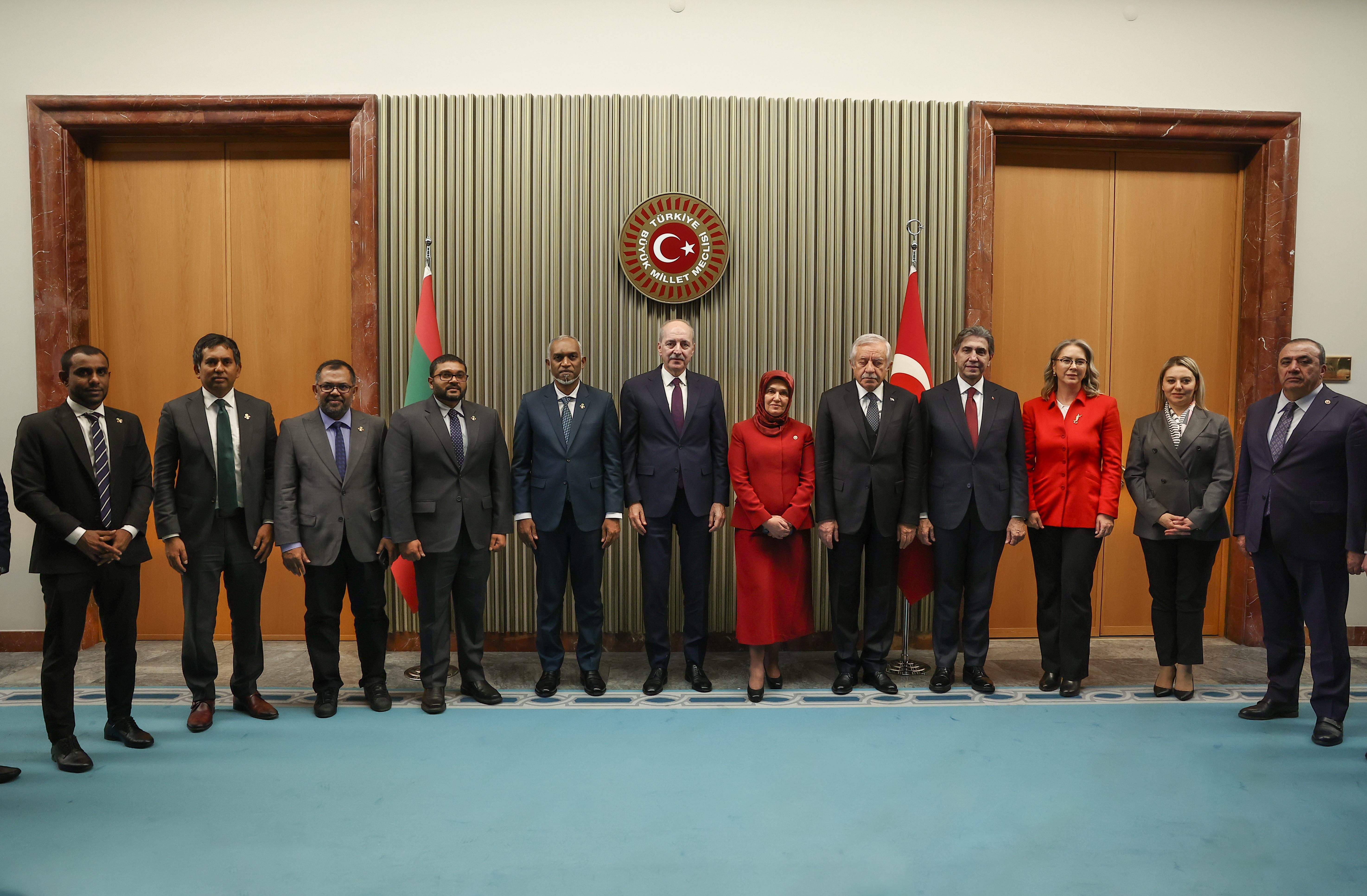 Meclis Başkanı Kurtulmuş ve Maldivler Cumhurbaşkanı Muizzu, baş başa görüşmenin ardından heyetler arası toplantı gerçekleştirdi.