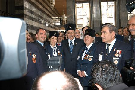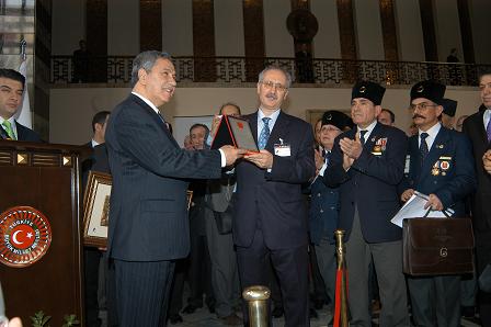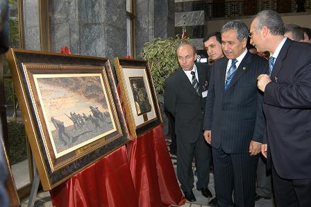 Konuşmasını, ''Çanakkale bir destan. Hepimiz böyle bir destanın çocuklarıyız. Ne mutlu böyle bir tarihe sahip olana'' diye tamamlayan ve konuklardan sergiyi gezmeden Meclis'ten ayrılmamalarını isteyen Arınç, Çanakkale Şehitlerini Tanıtım ve Araştırma Derneği Başkanı