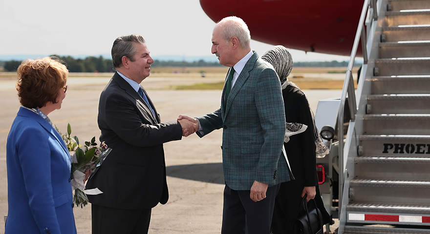 Meclis Başkanı Kurtulmuş’u, Dulles Uluslararası Havalimanı’nda Türkiye’nin Vaşington Büyükelçisi Sedat Önal ve diğer ilgililer karşıladı.