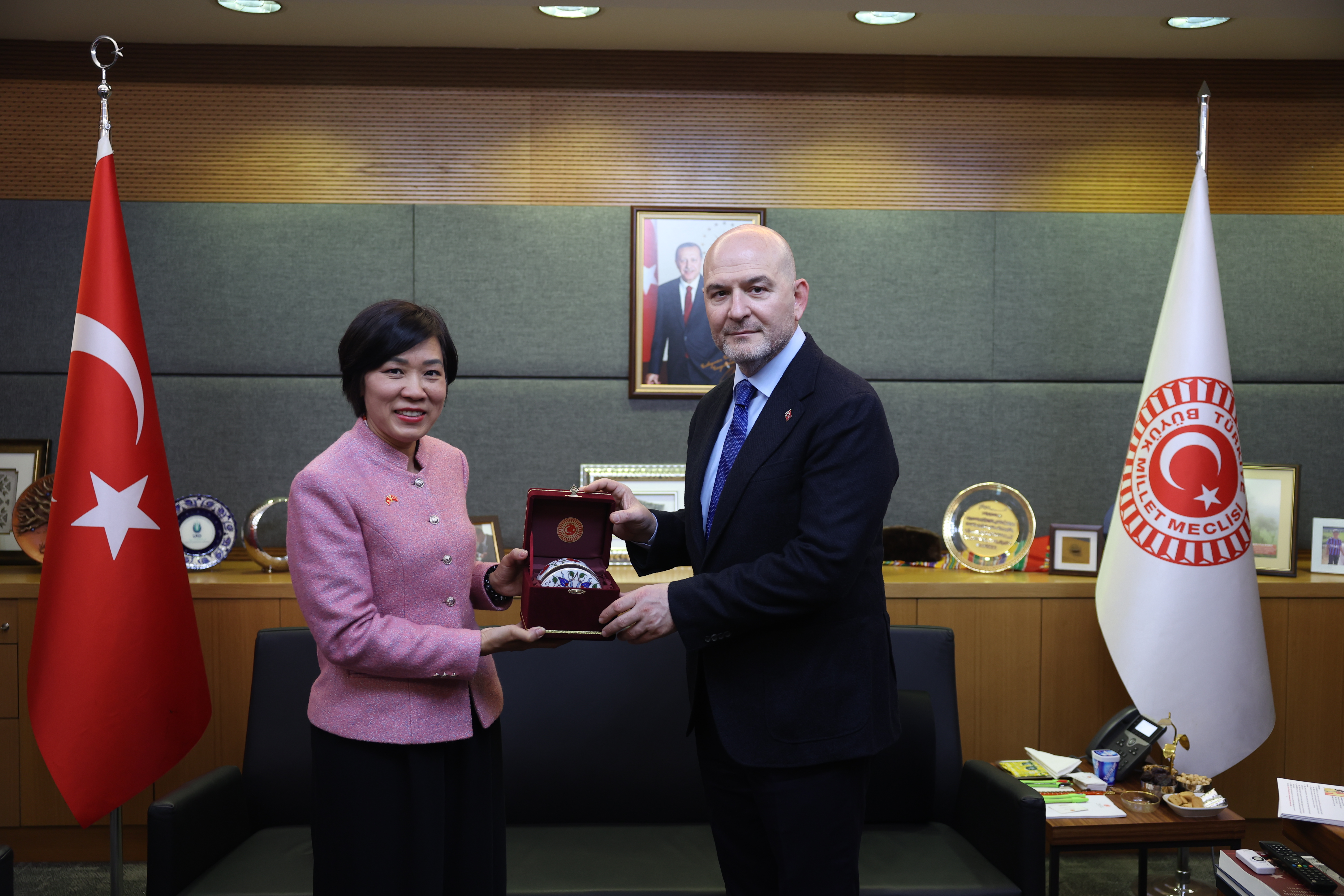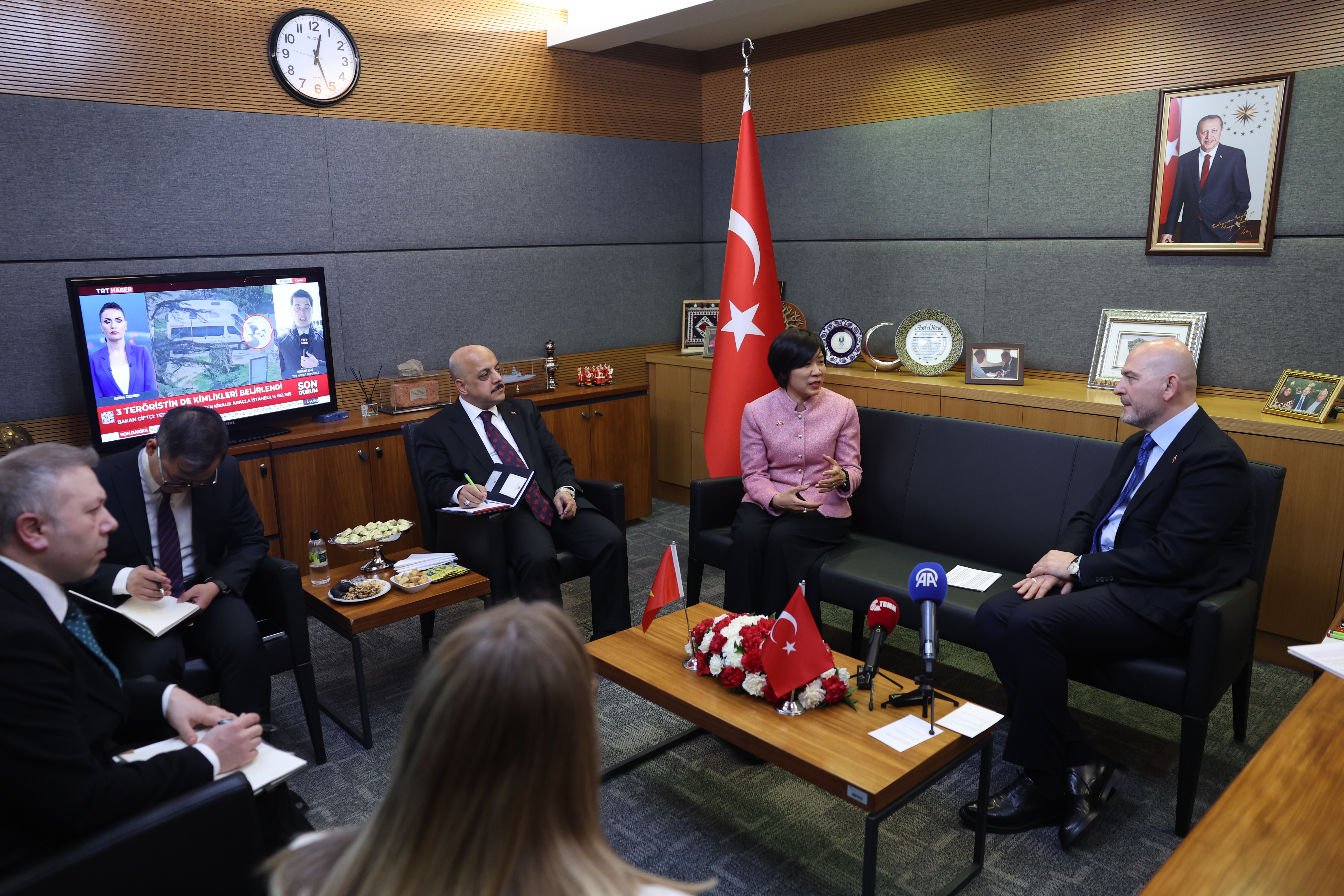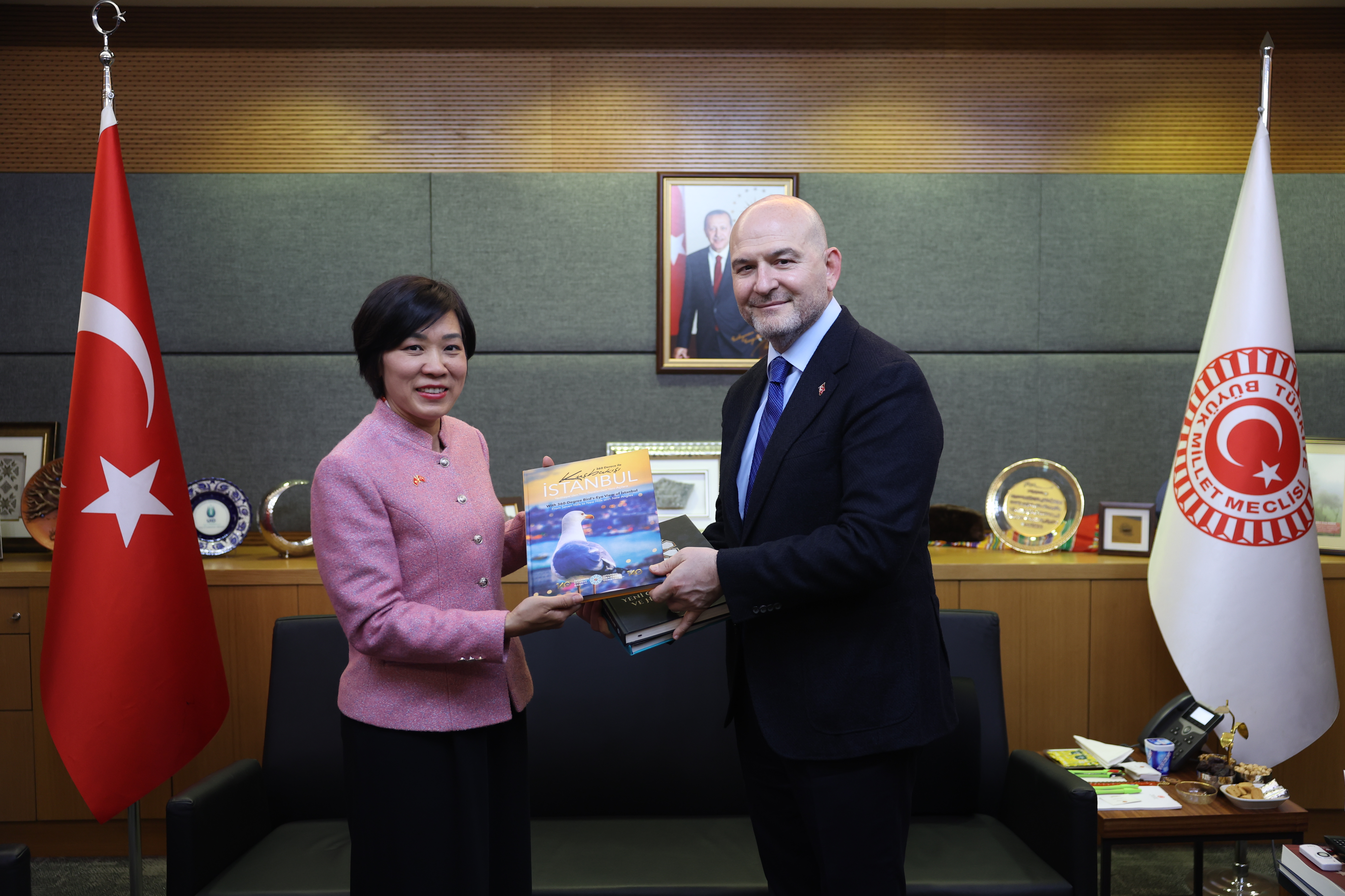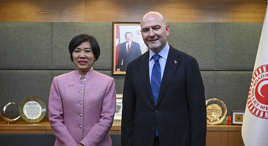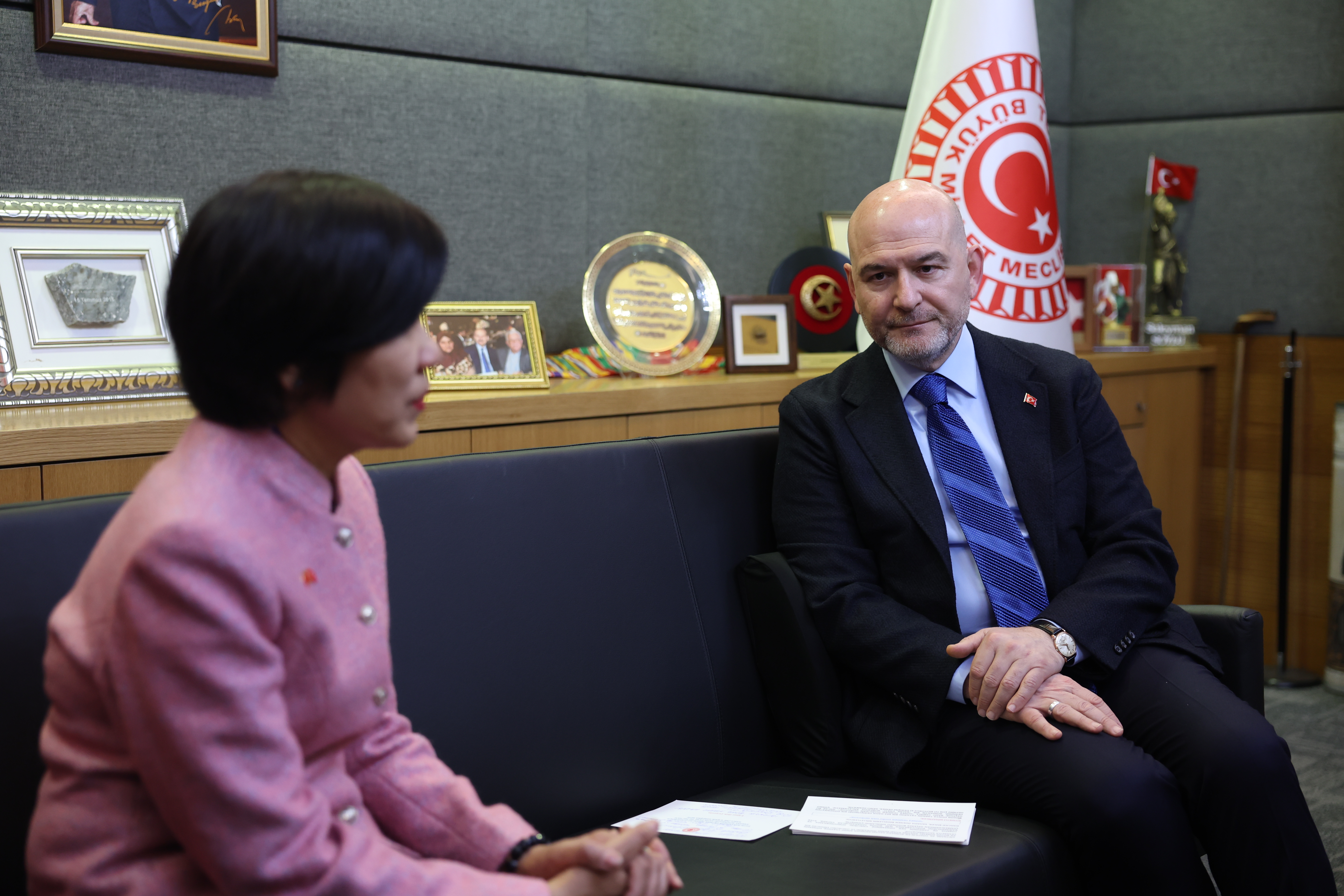TBMM İçişleri Komisyonu Başkanı Soylu, Meclis'teki makamında Vietnam'ın Ankara Büyükelçisi Dang Thi Thu Ha ile bir araya geldi.