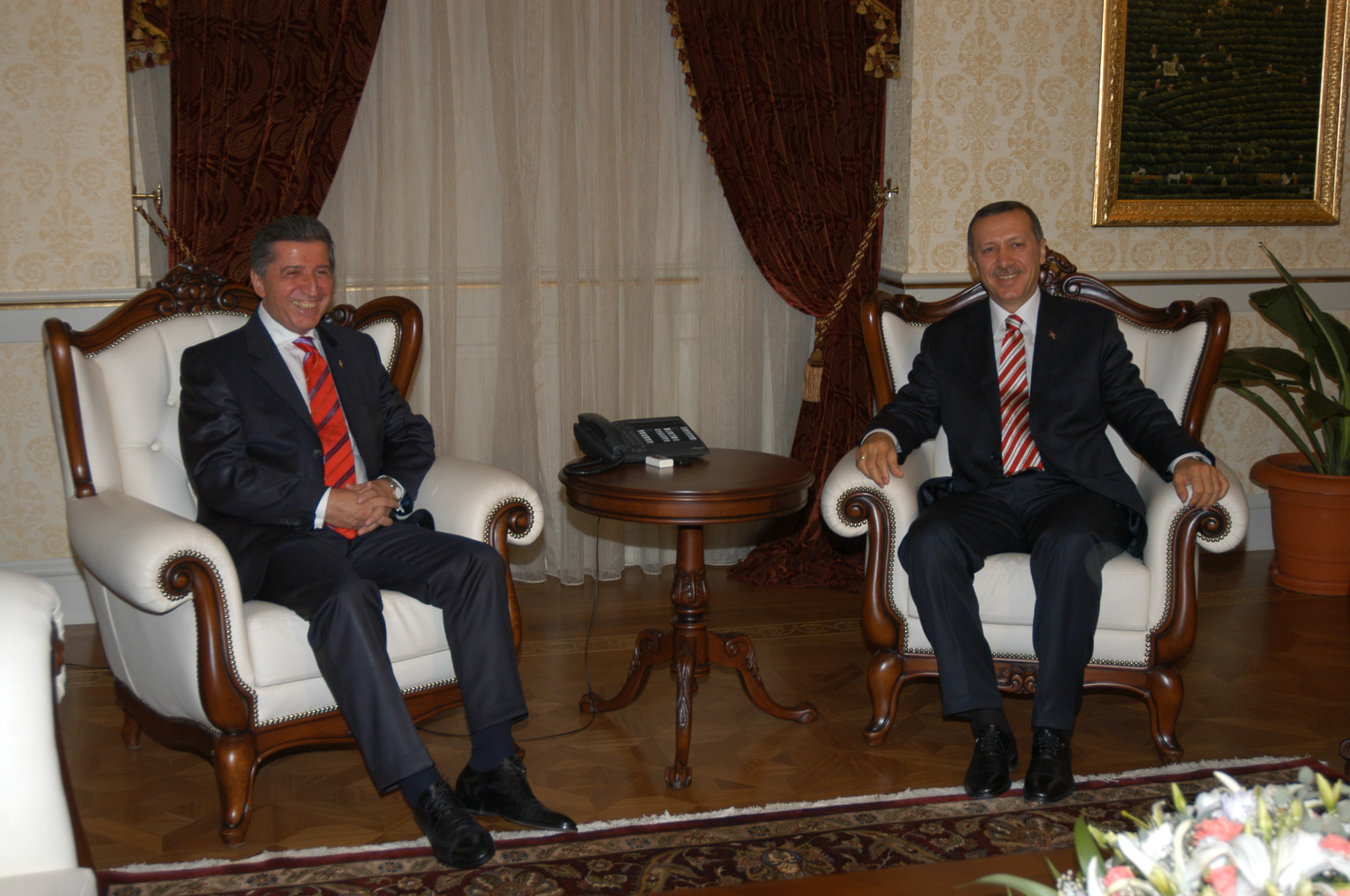 Başkanlık Divanının arkasında yer alan odada Toptan ile Başbakan Erdoğan