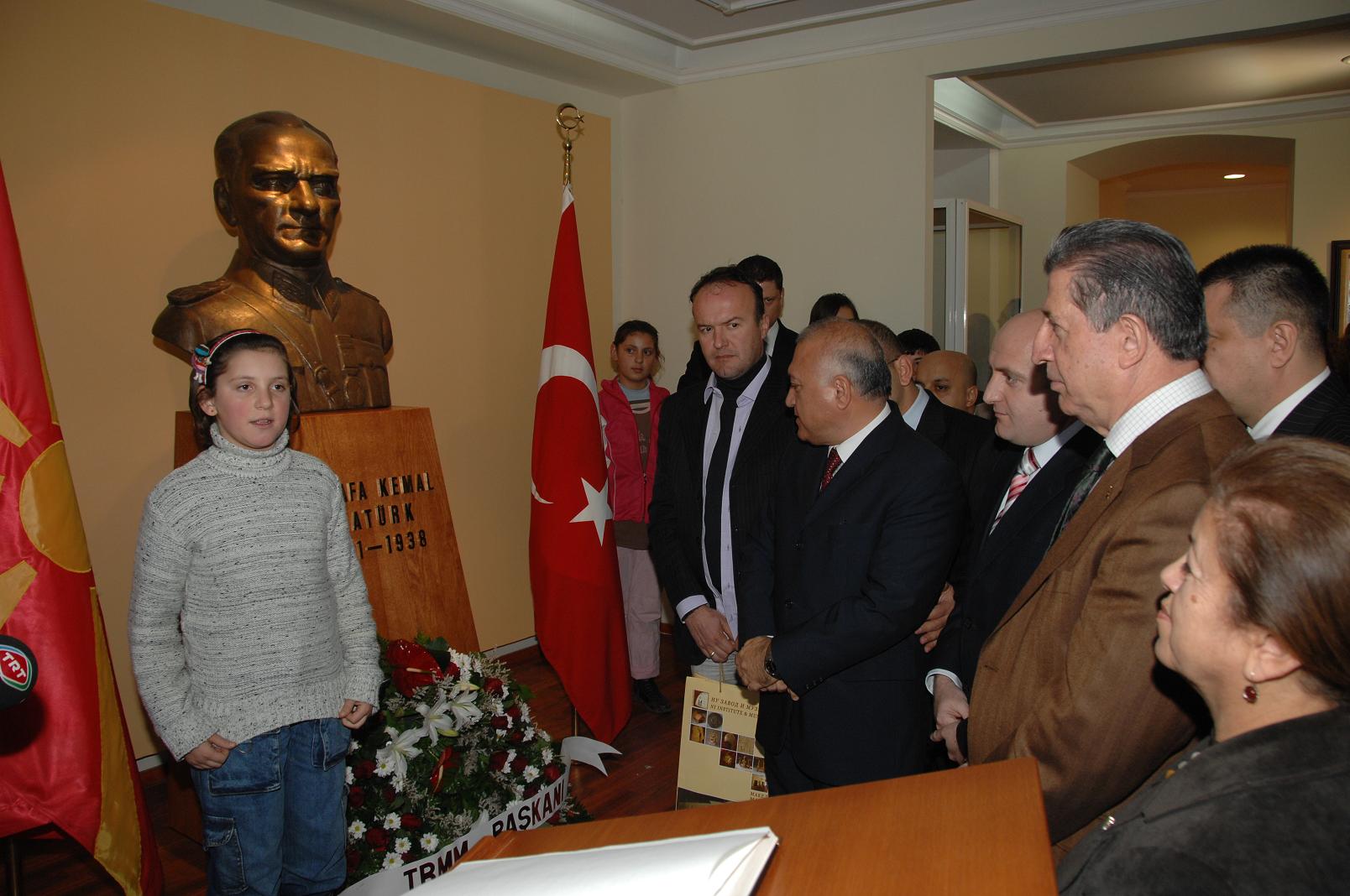 Manastır Belediye Başkanı Vlademir Takeski'yi ziyaretinin ardından, Atatürk'ün 1896-1899 yılları arasında eğitim gördüğü Askeri İdadisini ziyaret eden Toptan, TBMM Başkanı olarak Atatürk'ün teneffüs ettiği yerlerde bulunmaktan duyduğu mutluluğu dile getirdi.